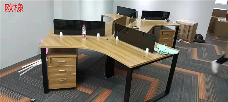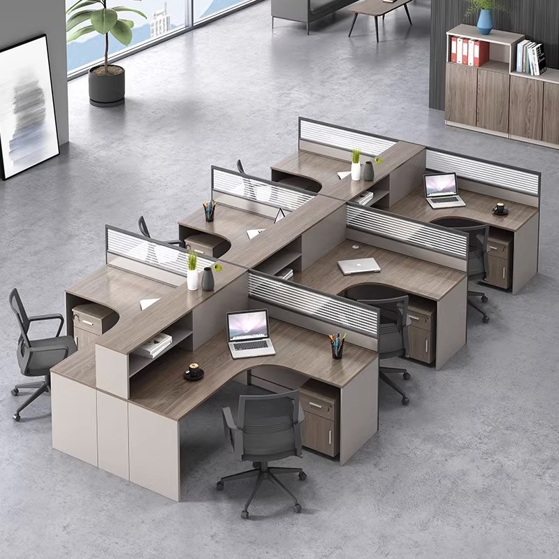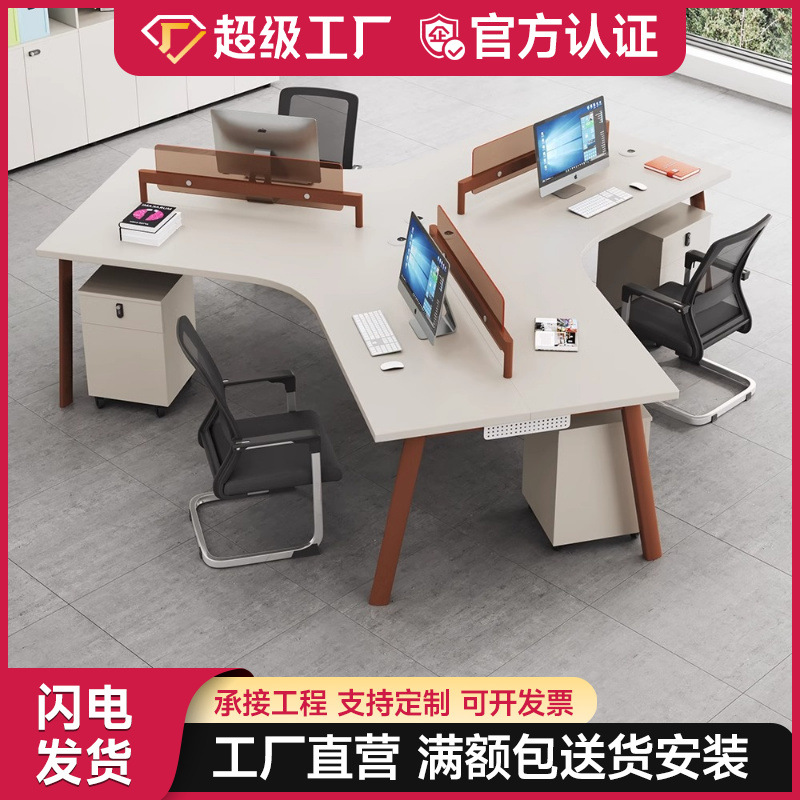 社員デスク四人位シンプル現代屏風作業席創意コーナー異型6人席テーブルと椅子の組み合わせ