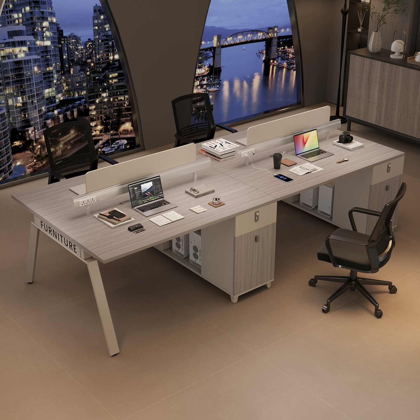 デスク4人位シンプルでおしゃれなオフィス家具6人の従業員カード席のテーブルと椅子の組み合わせパソコンデスク