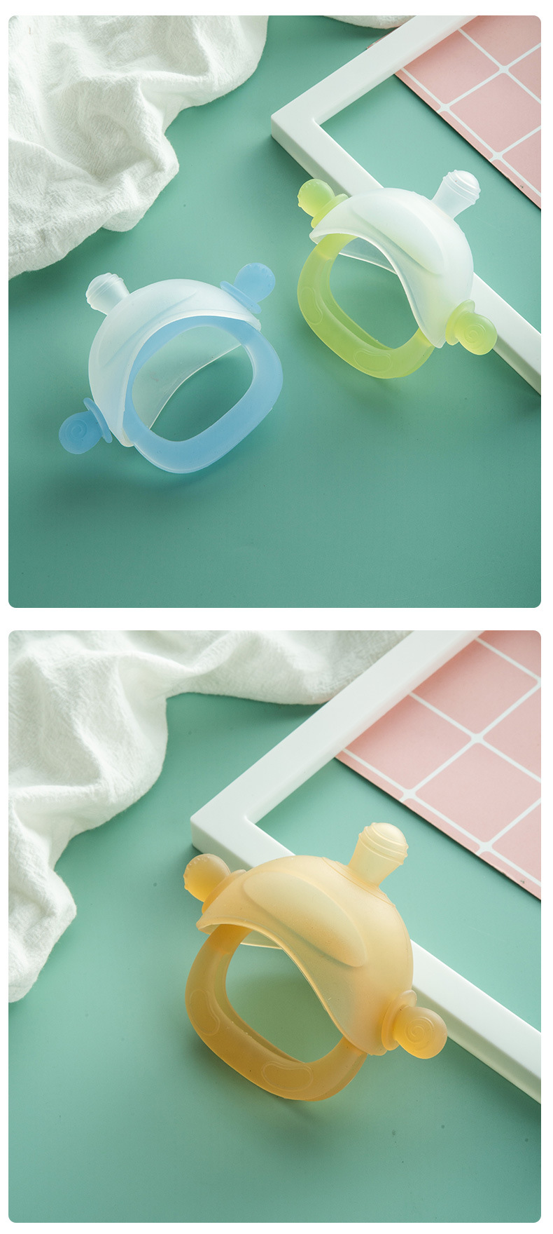 亚马逊新款小鹿小兔子摇铃牙胶婴儿咬咬乐食品级硅胶可啃咬胶摇铃