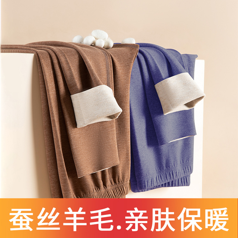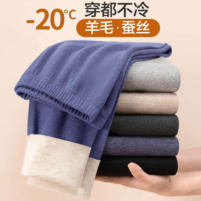德绒秋裤男士保暖裤加绒加厚发热蚕丝羊毛打底裤男衬裤内穿线裤冬
