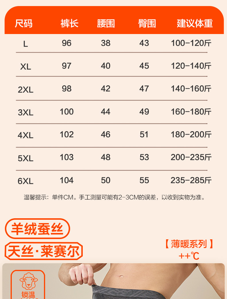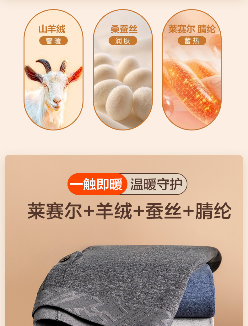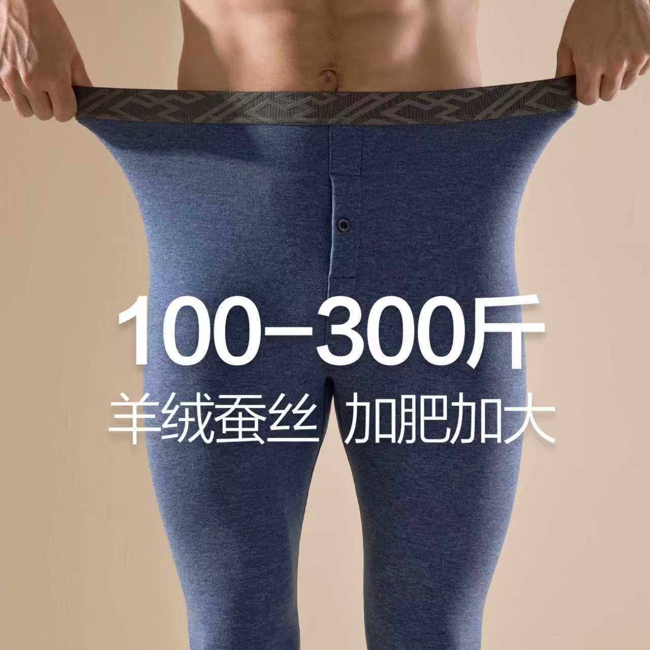 男士羊绒蚕丝保暖裤加肥加大码胖体秋冬宽松裤德绒打底衬裤线裤