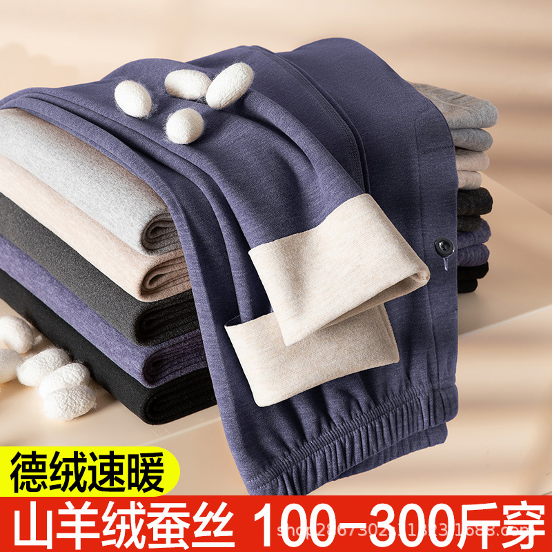 徳絨秋ズボン男性保温ズボン加絨毛発熱綿ウールシルク底ズボン内着冬