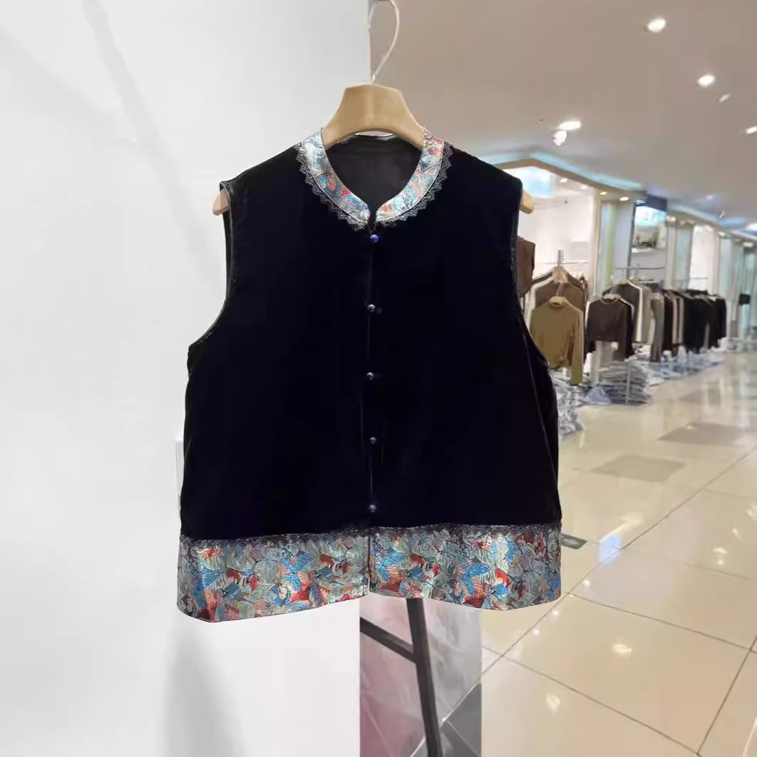 新レトロ国風ベルベット馬甲2024秋のゆったりとした痩せた洋風ベストノースリーブの女性の上着