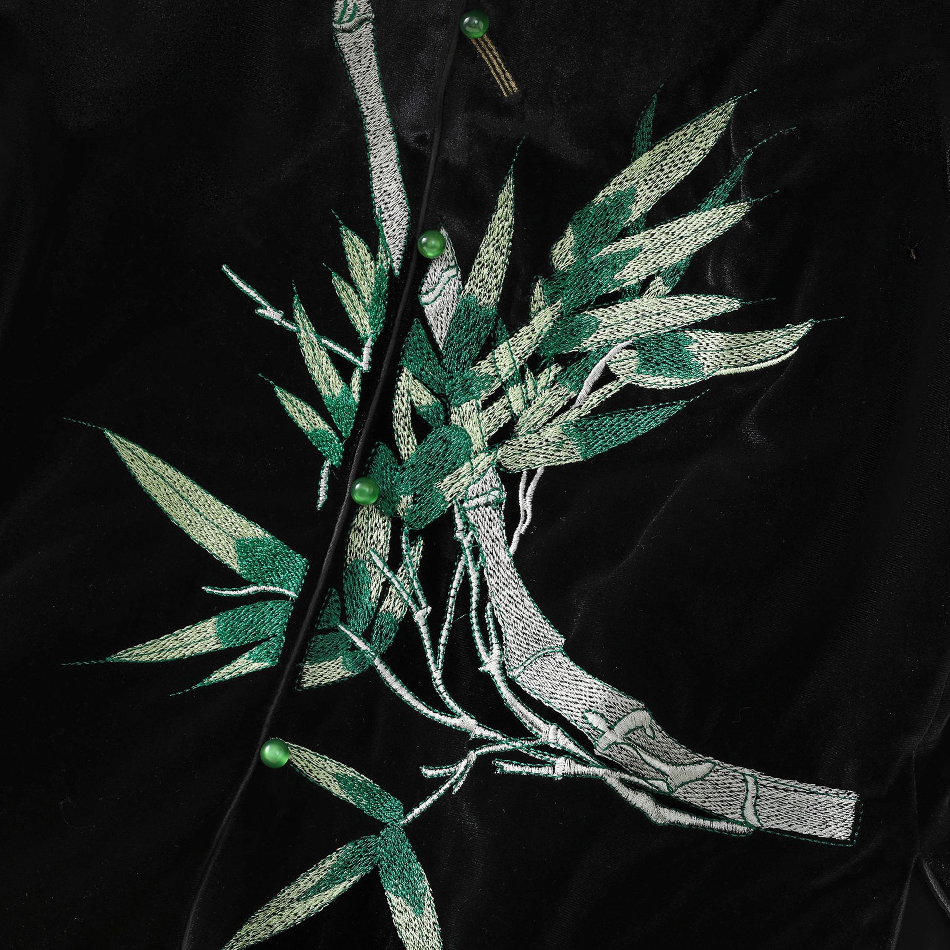 新中国式国風ドーパミンは独特の綺麗な重工刺繍の青いベルベットのベストの上着を着ています。