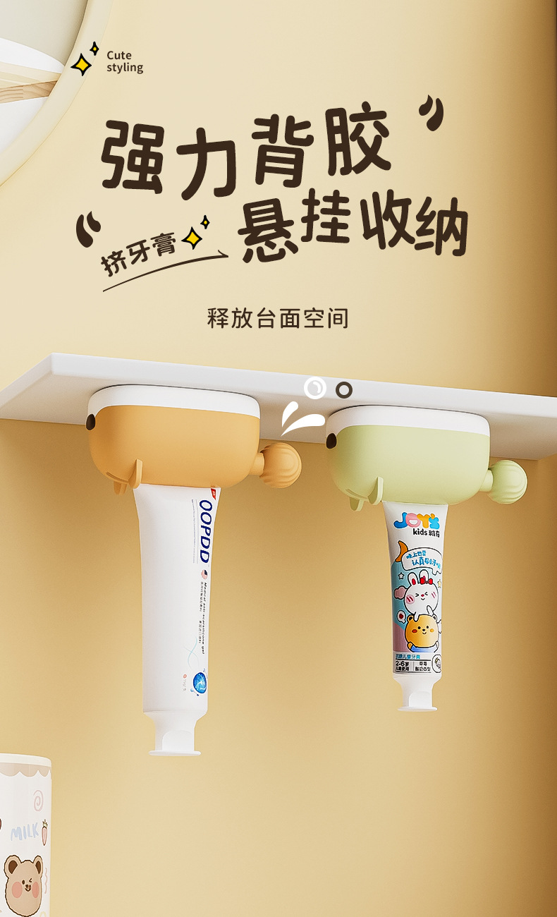 磁吸挤牙膏器家用卡通多巴胺护手霜洗面奶夹壁挂卫生间挤牙膏神器
