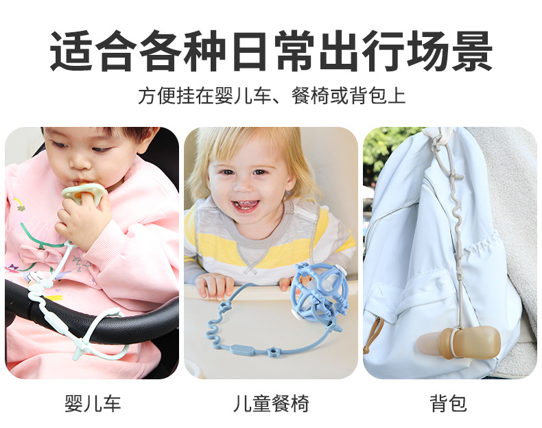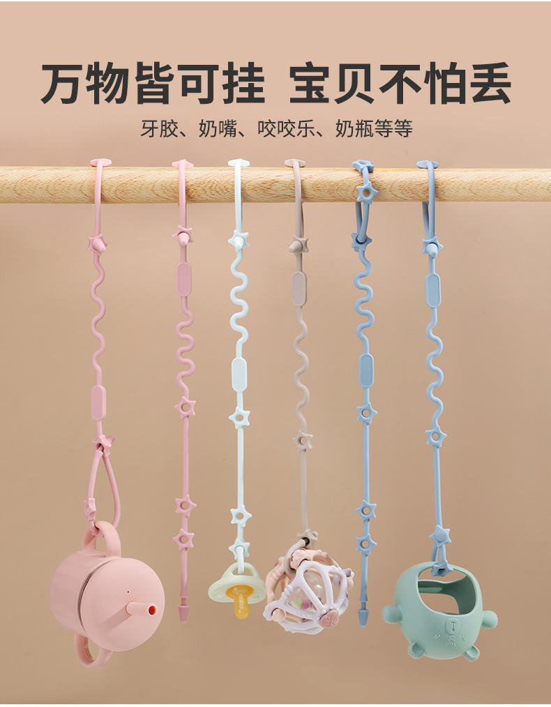 クロスボーダーの赤ちゃんのおしゃぶりのチェーンの子供の歯のゴムのおもちゃのチェーンの食品級のシリカゲルを防ぐ一体のおしゃぶりのチェーンをなだめます。
