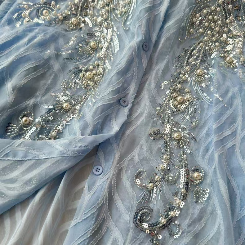 高級洋気重工釘珠亮片立体花シャツ女2024春装新透視網糸フランス上着