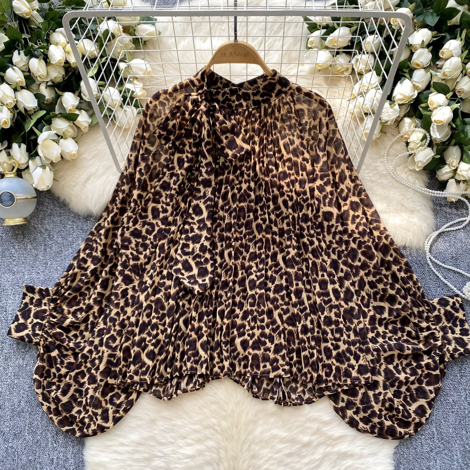 国境を越えた御姐小香風欧米風上着blouse新ファッション蝶ネクタイ灯籠袖波点シャツ