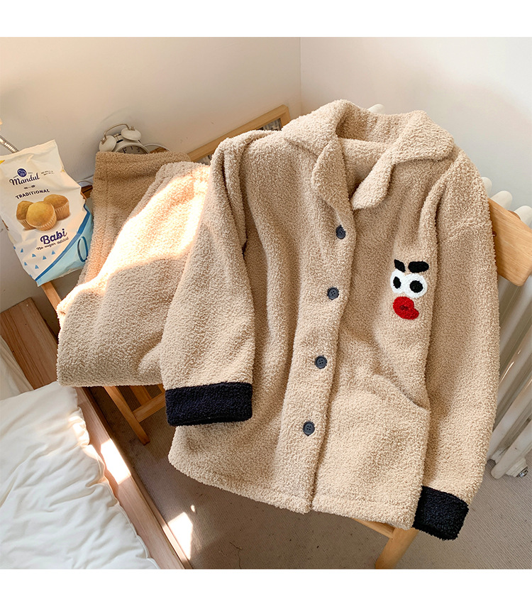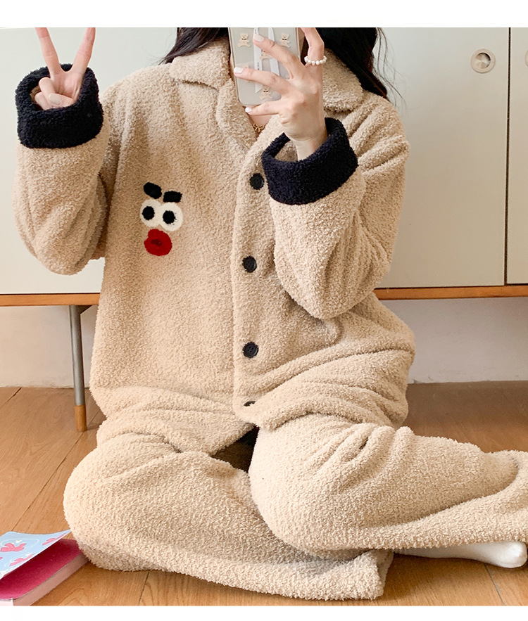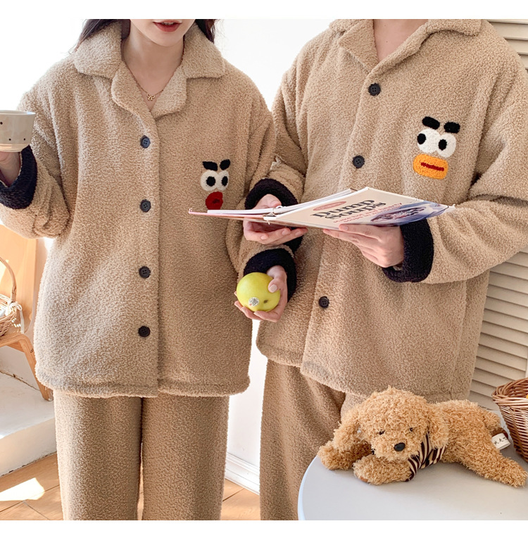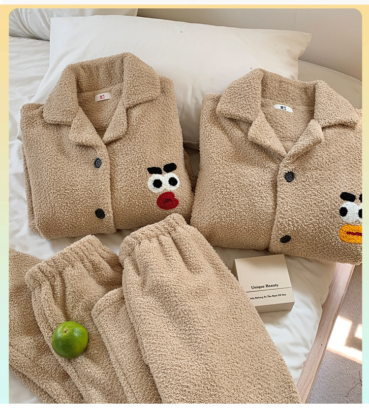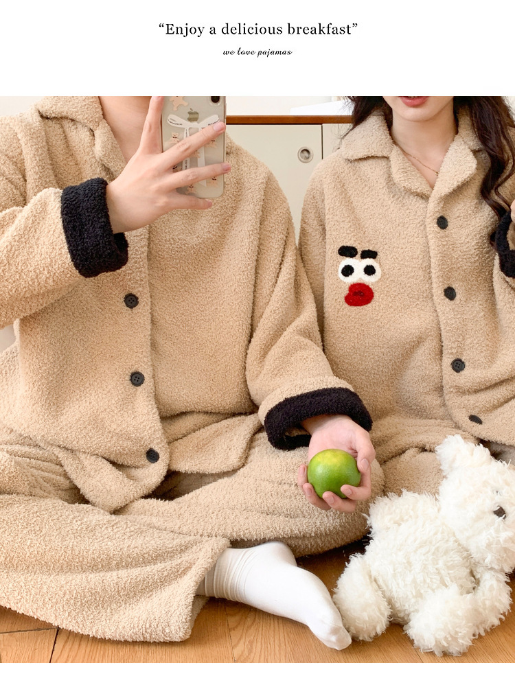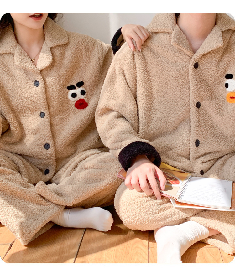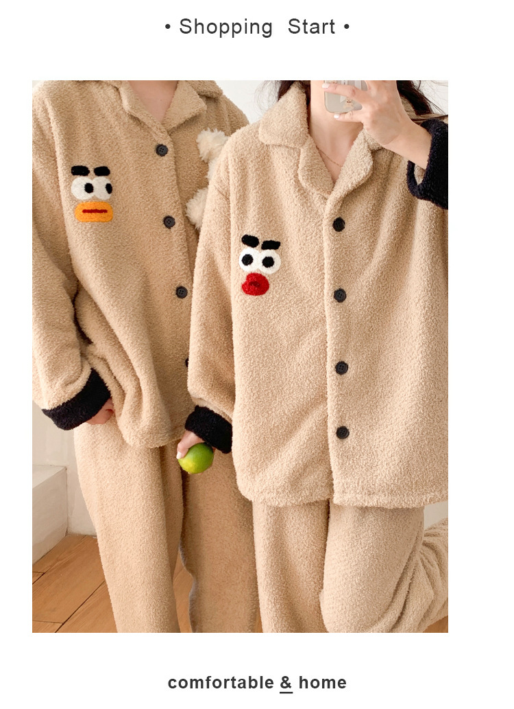 半分のベルベットのカップルのパジャマ女性秋冬の新しい韓国版カジュアルアニメとベルベットの男性の家庭服セット