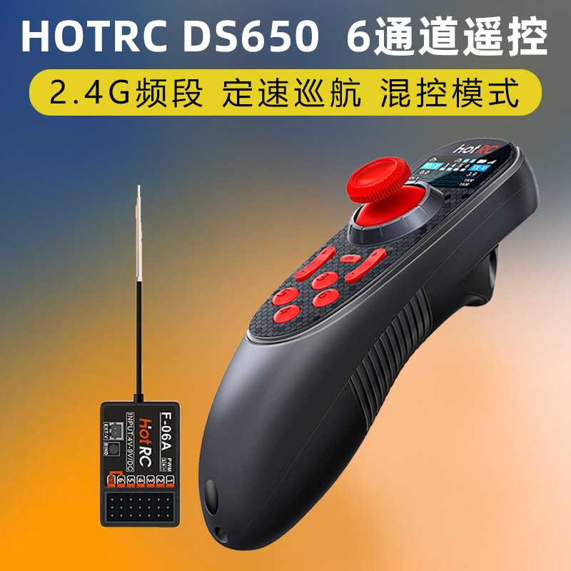 华航HOTRC单手遥控器DS600六通道单手割草机打药打窝DIY模型车船