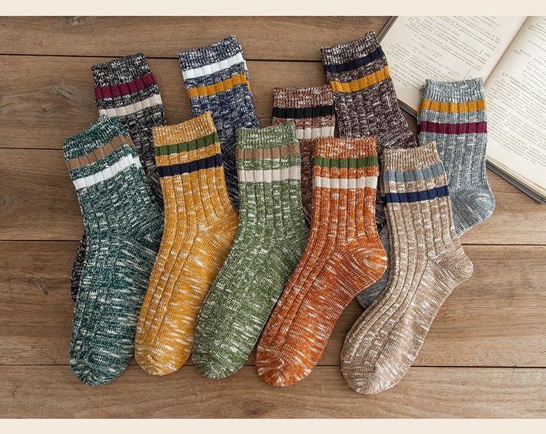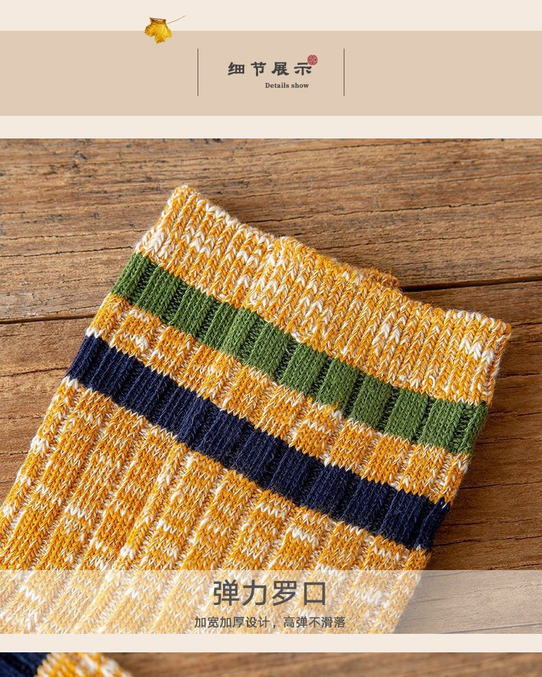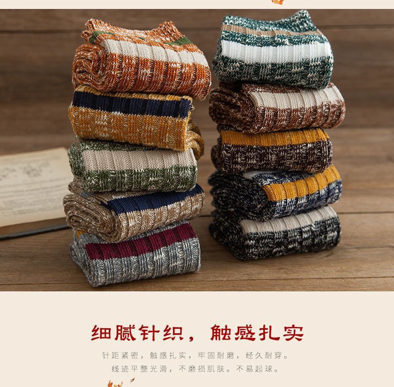 冬季袜子美拉德中筒堆堆袜条纹防臭吸汗秋季袜子长筒袜