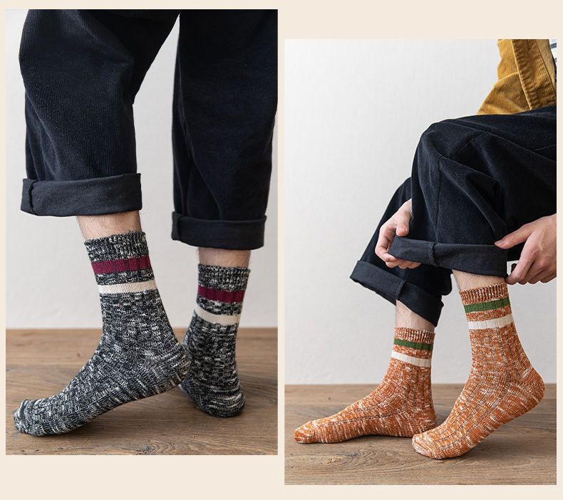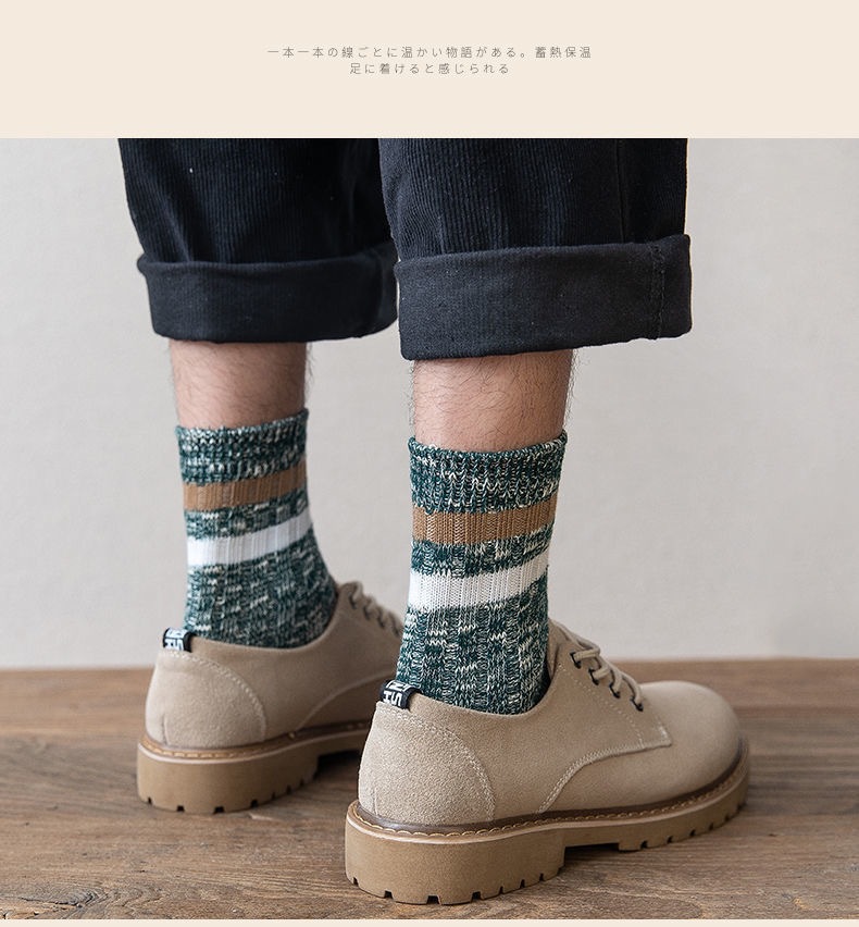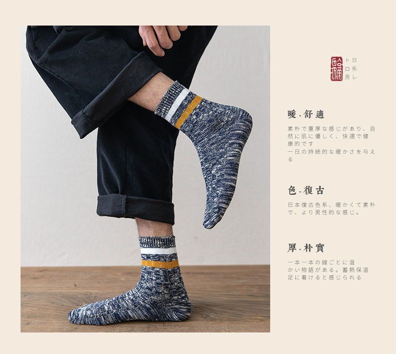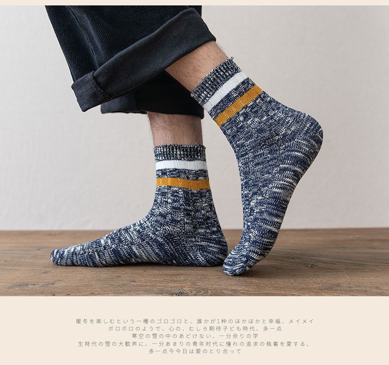 秋冬男性用厚手暖かいミッドカーフソックス、凍結防止足男性用ソックス、通気性と防臭性のロングソックス、トレンディで多用途なカジュアルソックス