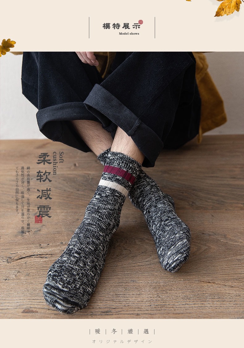 靴下男性秋冬タイプの厚手長筒防臭毛輪靴下中筒とベルベット保温男性秋冬ストッキング