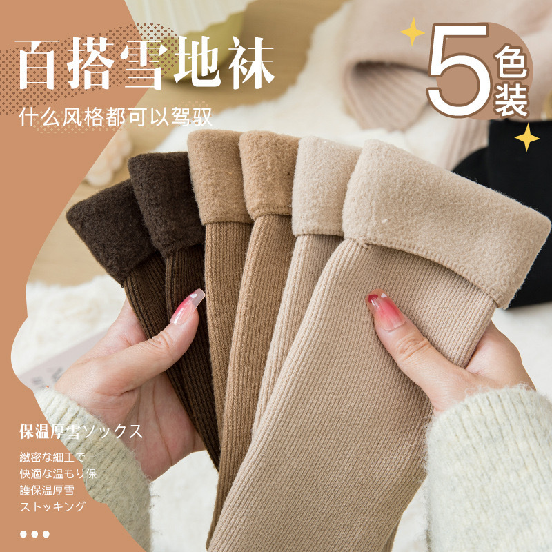 保温秋冬ベルベット厚手スノーソックス中筒男女カップル月子ソックス秋冬フロアソックス