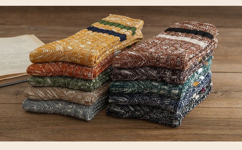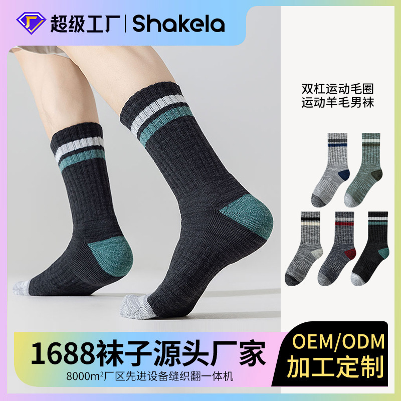 羊毛毛圈运动中筒袜定制一体机无骨双杠男袜跨境亚马逊专供保暖袜