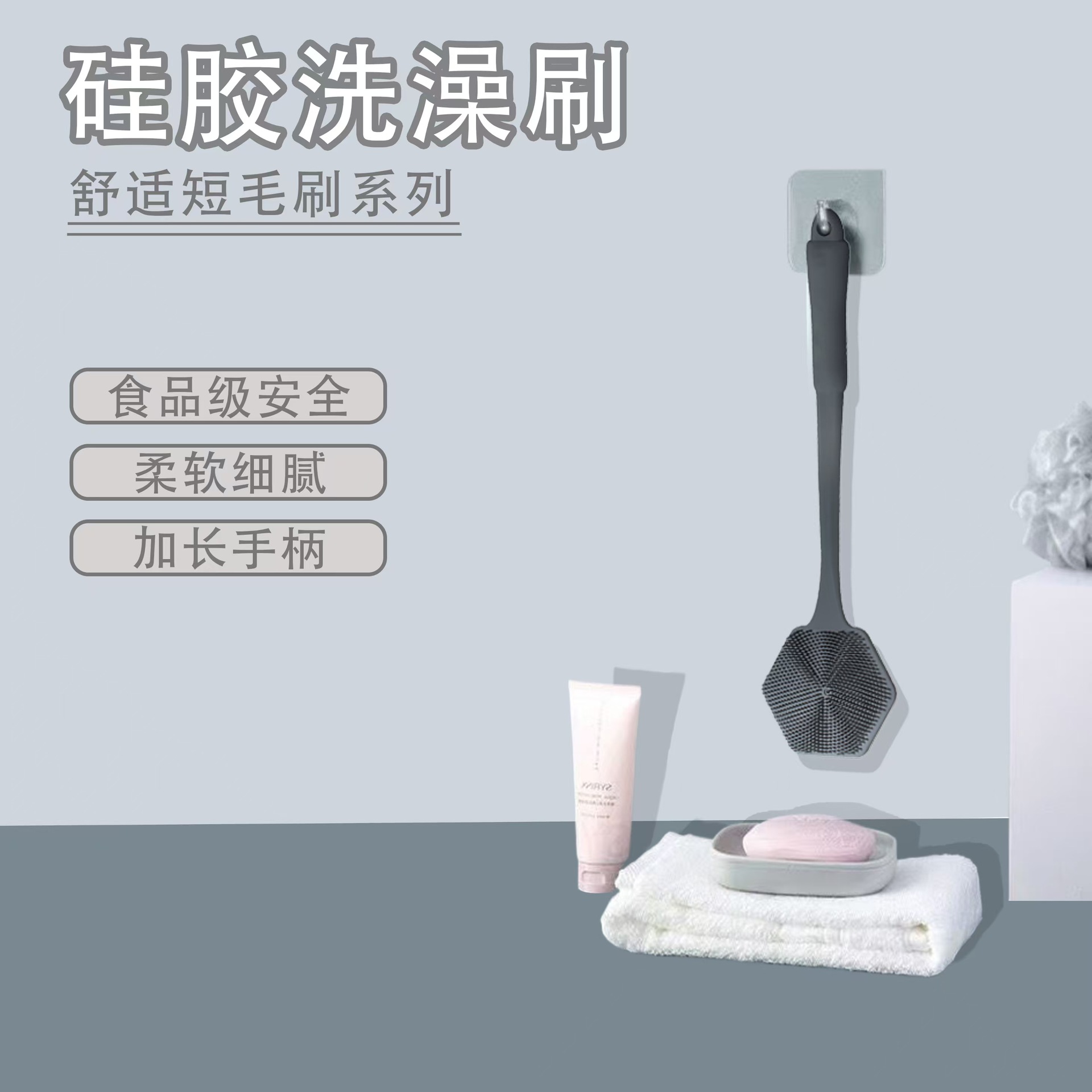 硅胶八边形长柄洗澡刷搓澡沐浴刷洗澡按摩刷冲凉淋浴刷现货批发