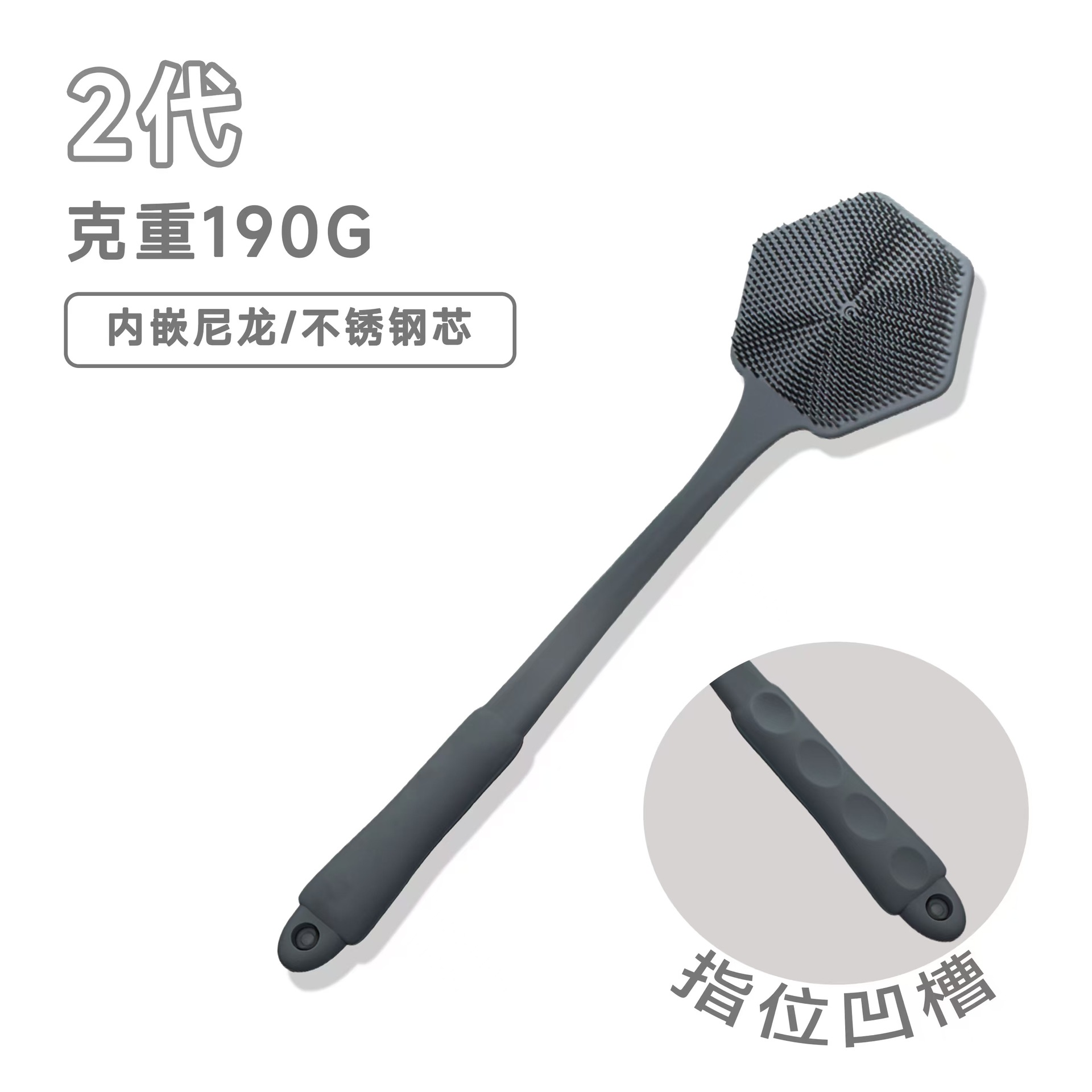 シリカゲル風呂ブラシの長い柄の両面に柔らかい毛を長くしてシャワーを浴びてマッサージします。