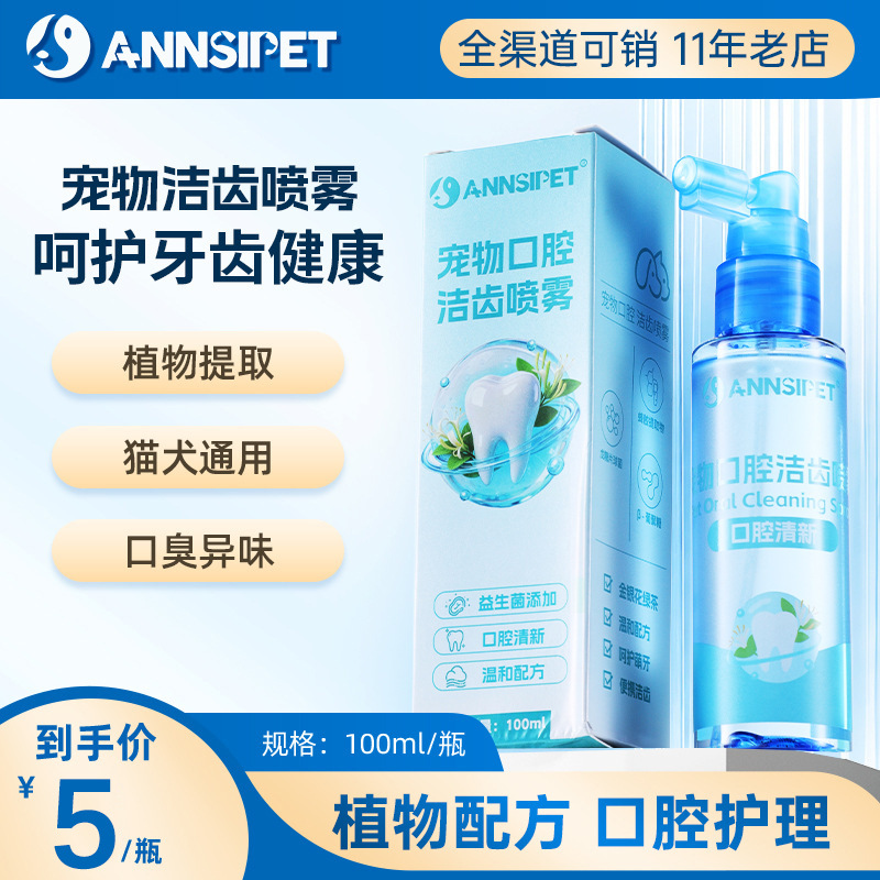 ANNSIPET宠物口腔喷雾100ml狗狗口腔护理猫咪牙齿清洁喷雾洁齿水