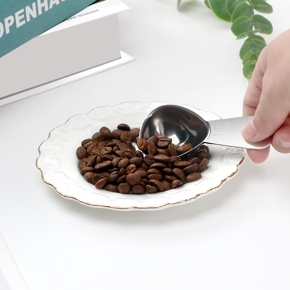 クロスボーダー304ステンレスコーヒー測定スプーン目盛付き5ml 15ml厚肉焙煎コーヒー豆粉ミルク計量スプーン