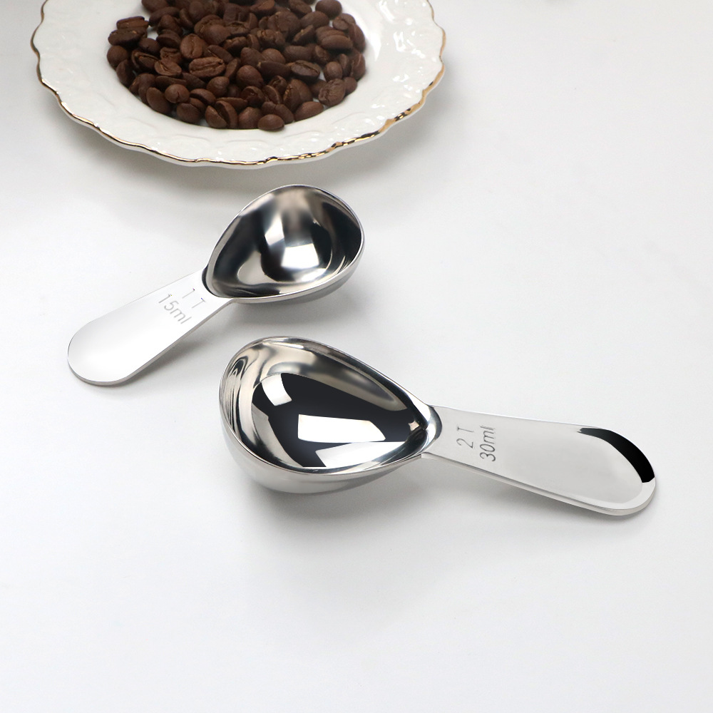 コーヒー計量スプーン15ml 30mlスケール付きステンレス304厚さ2点セットコーヒー豆計量スプーン測定スプーンセット
