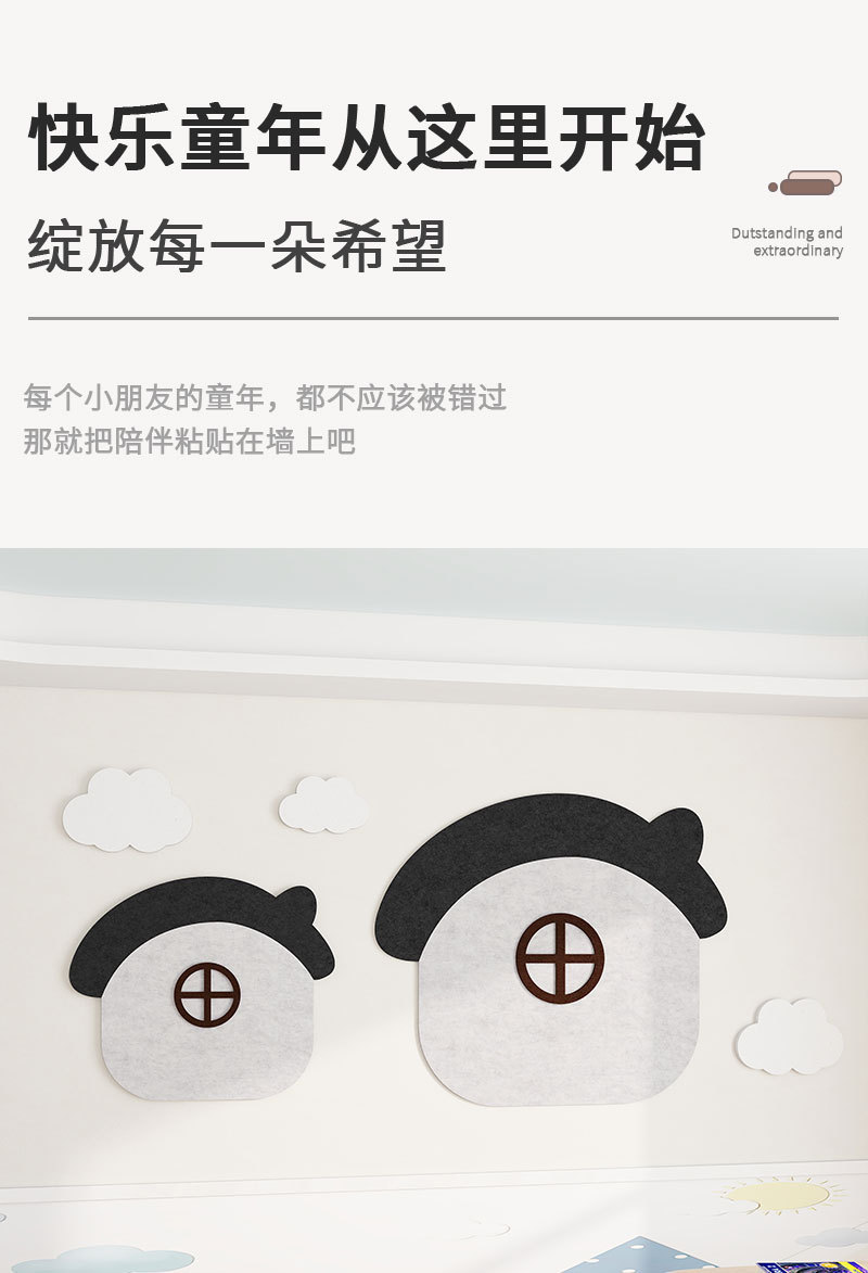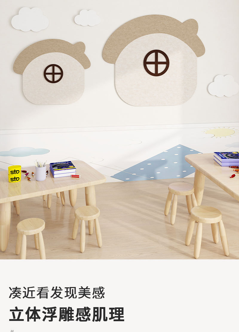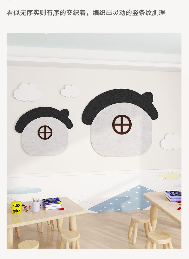 フェルトの壁にins風フェルトの板を貼って幼稚園の教室の作品にくっつきます。