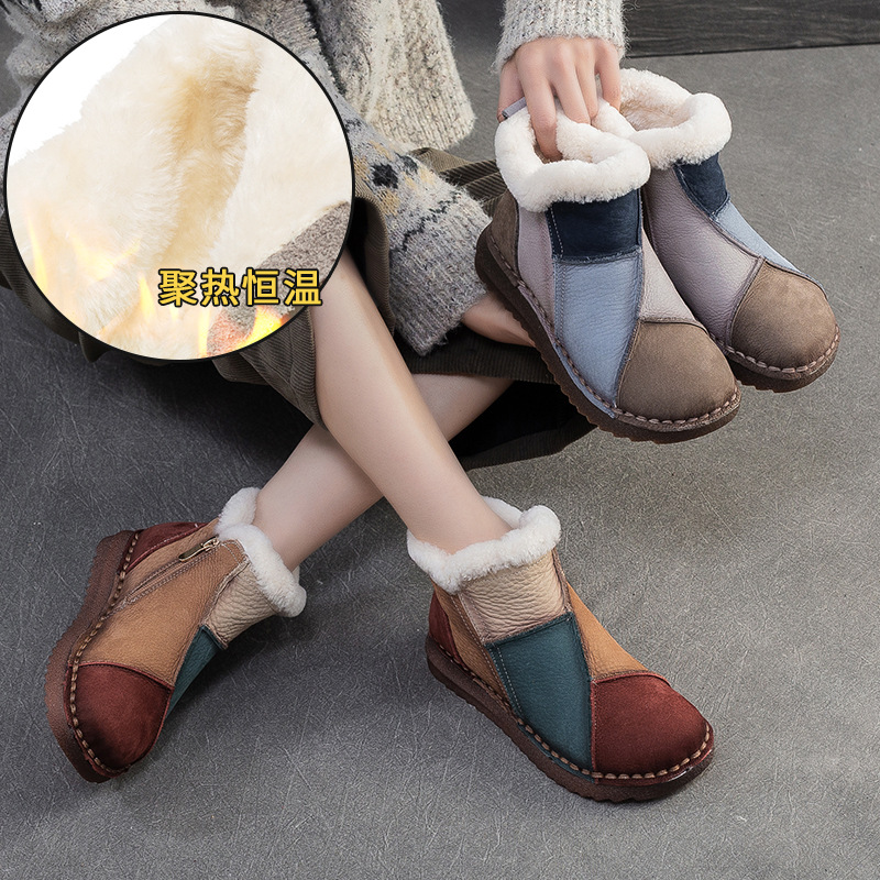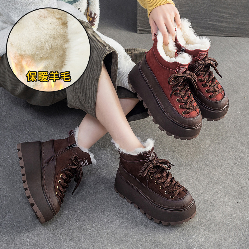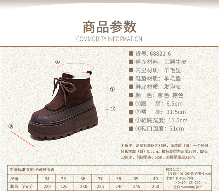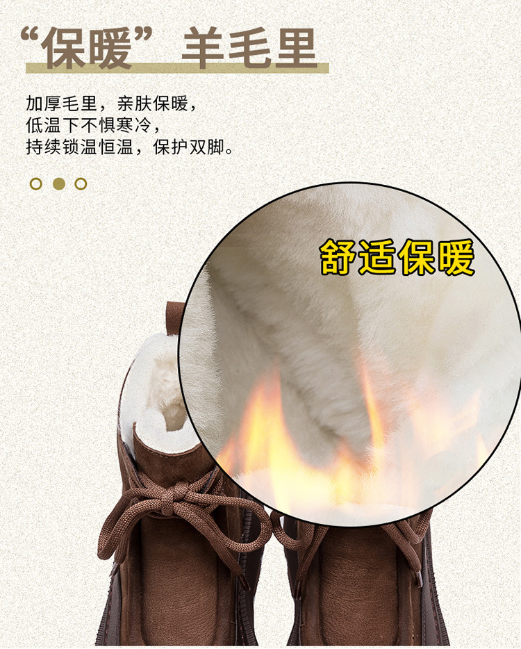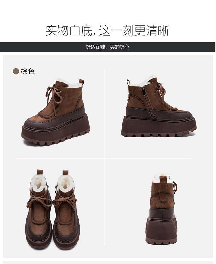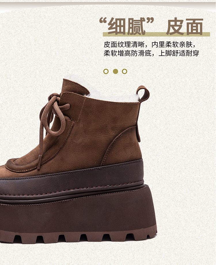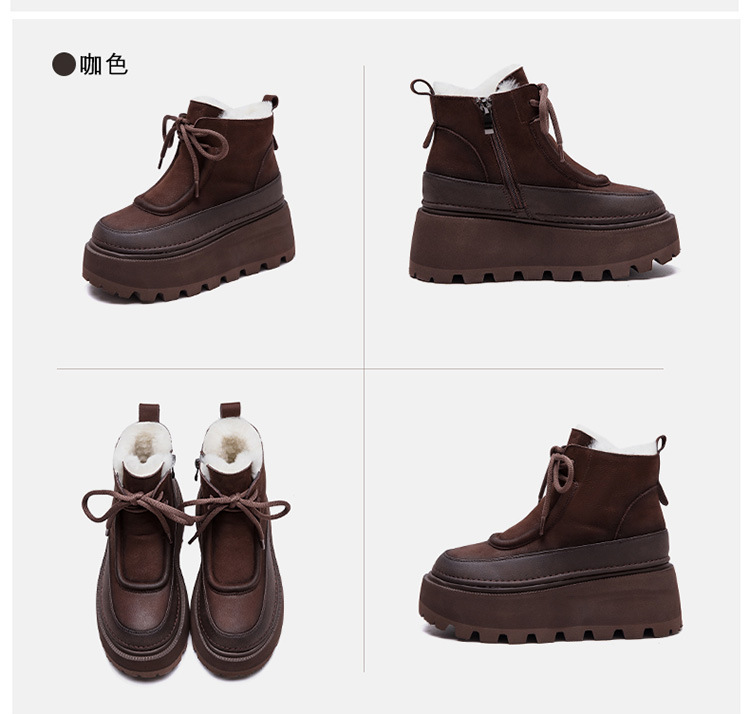 杰骤2025冬季新款羊毛保暖复古风舒适雪地靴厚底短靴头层牛皮女鞋