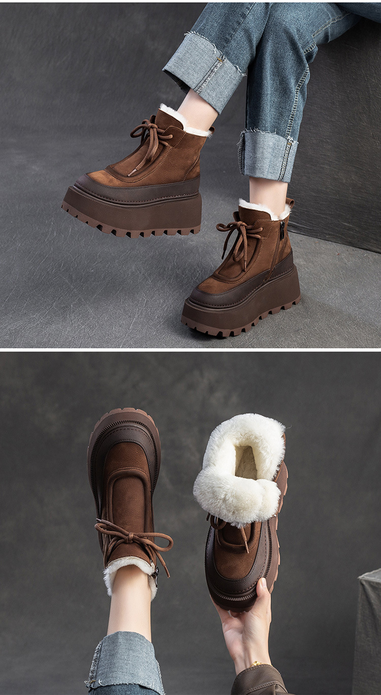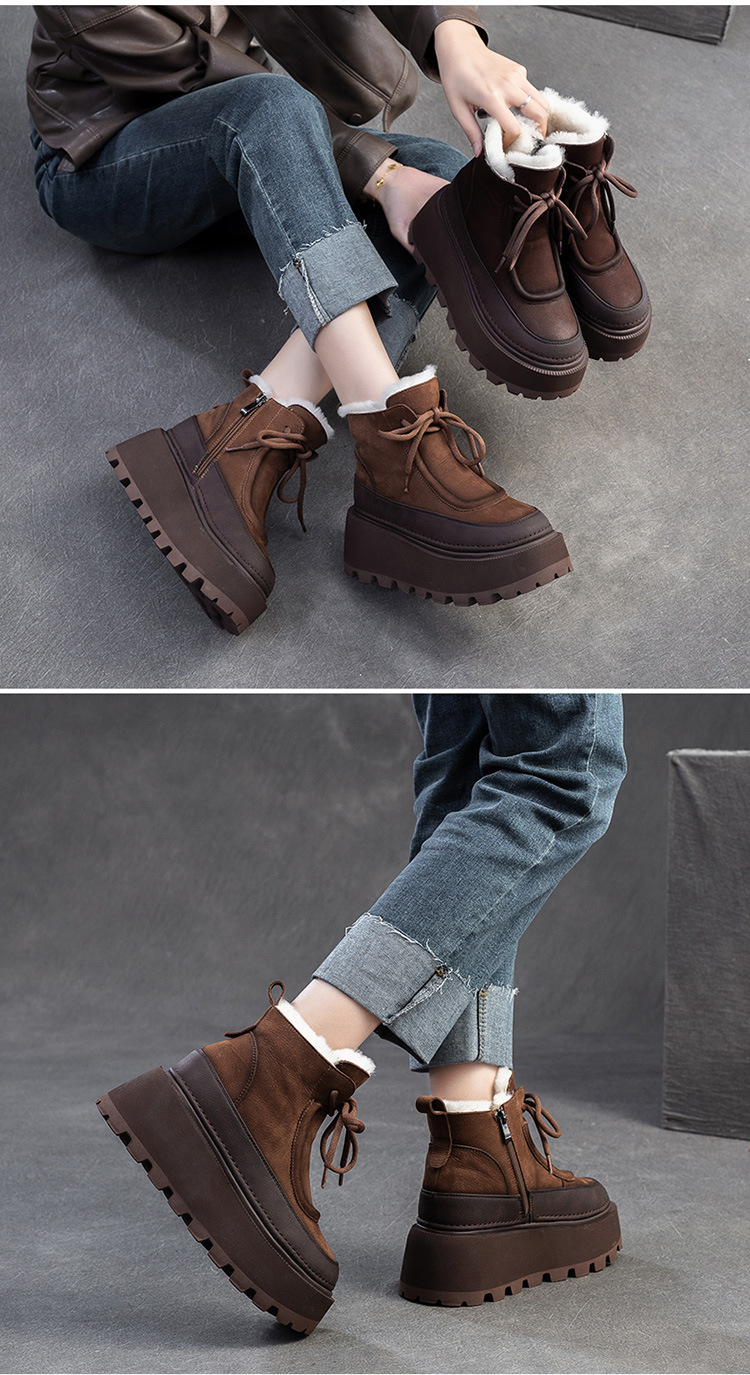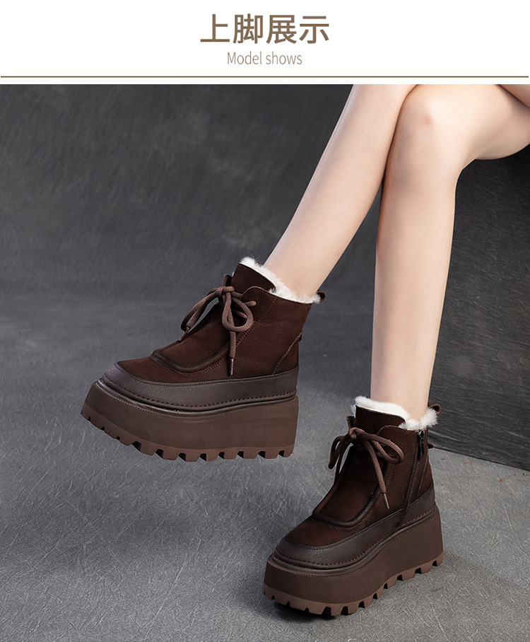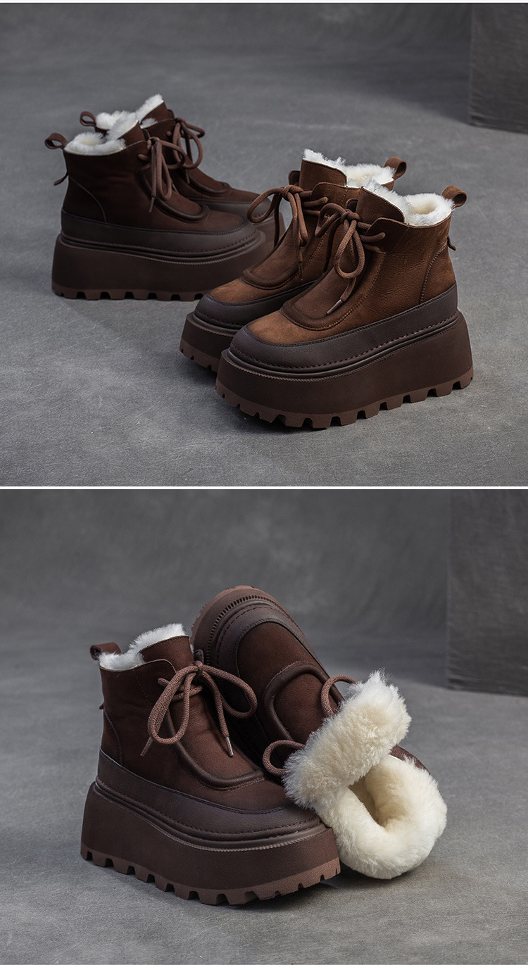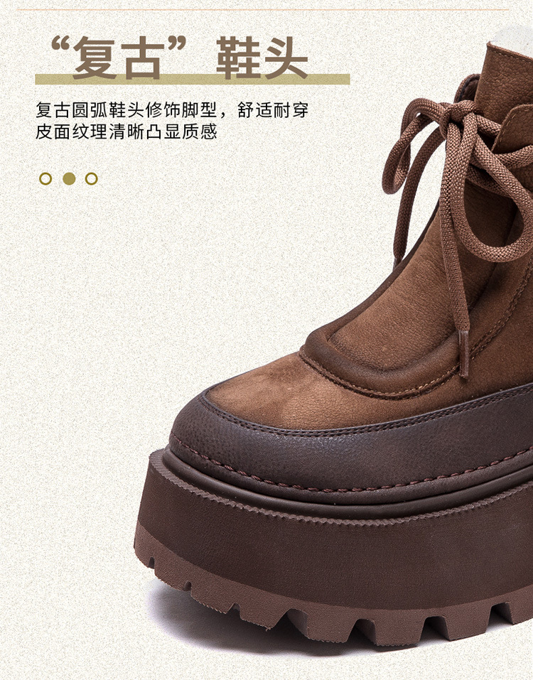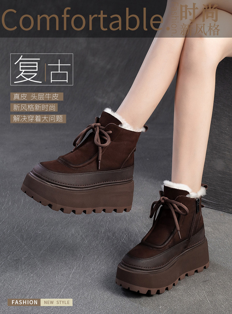 杰骤2025冬季新款羊毛保暖复古风舒适雪地靴厚底短靴头层牛皮女鞋