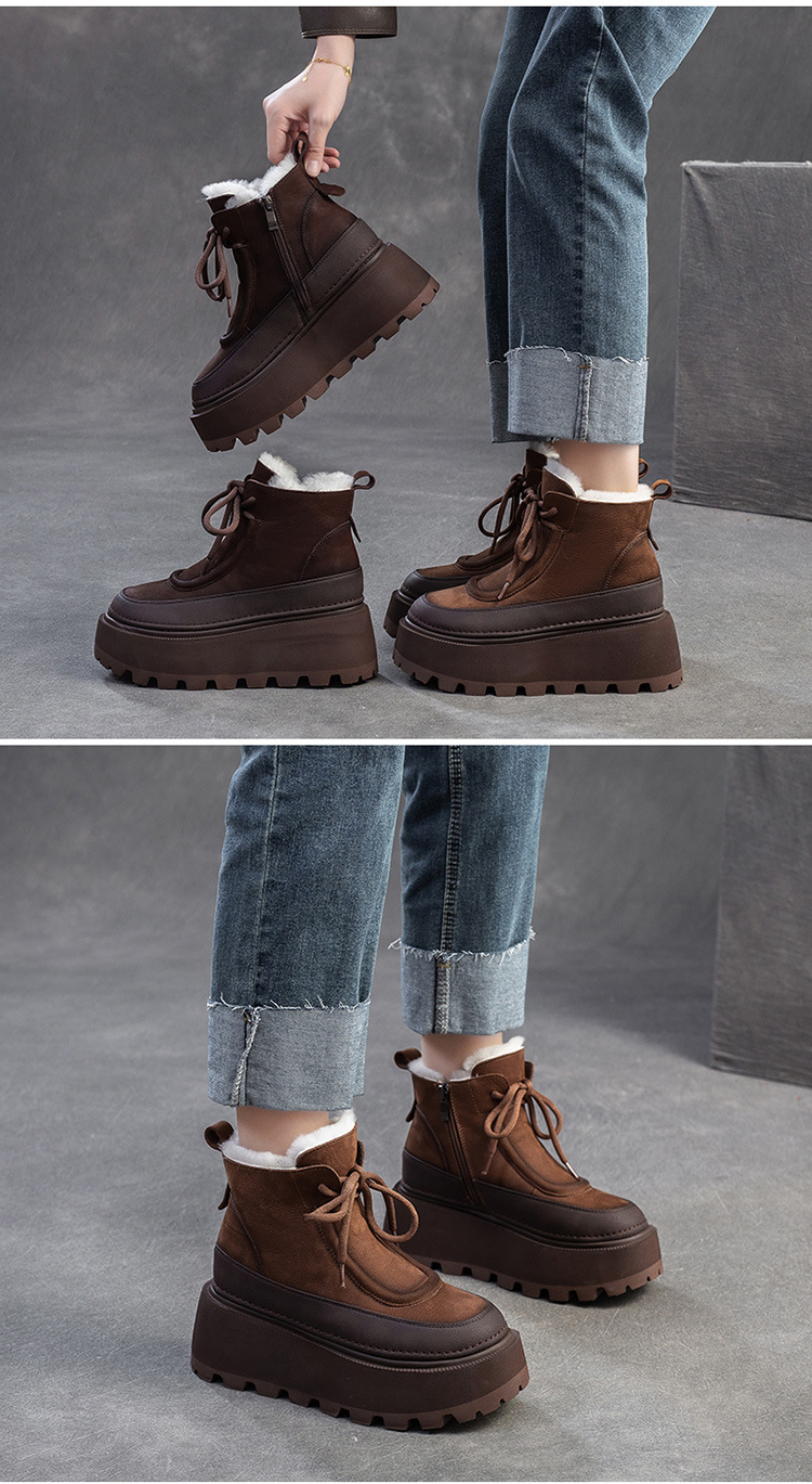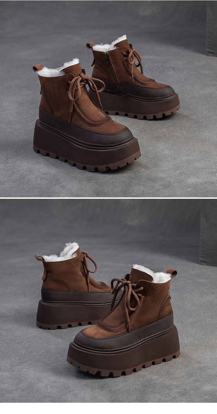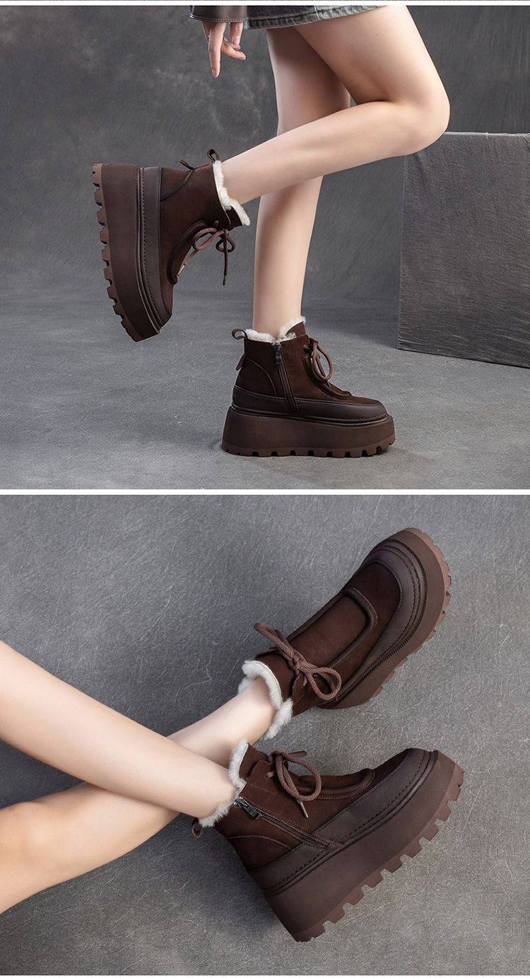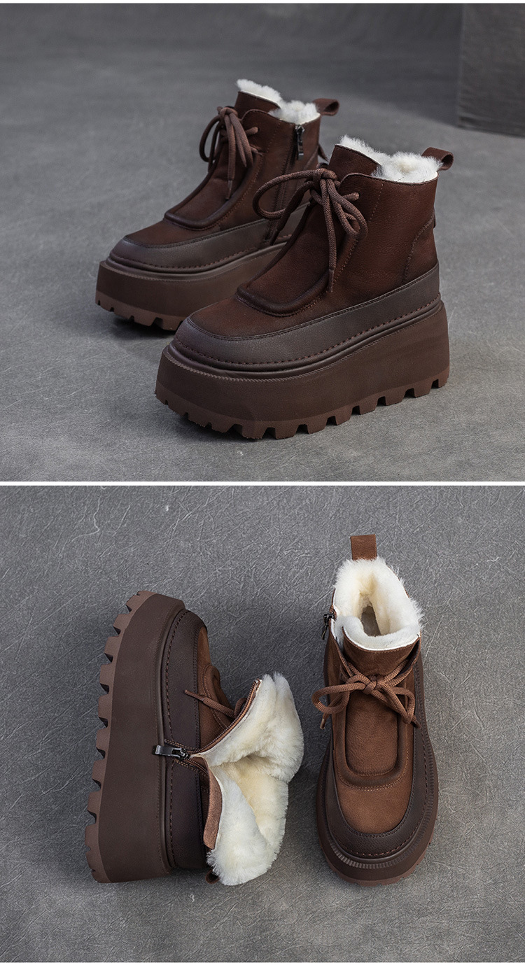 杰骤2025冬季新款羊毛保暖复古风舒适雪地靴厚底短靴头层牛皮女鞋
