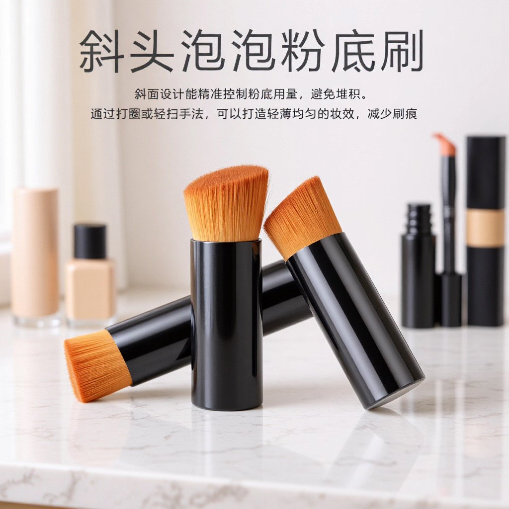 斜めヘッドのファンデーションブラシ、フォームファンデーション用メイクブラシ、粉を吸わない、跡が残らないコンシーラーブラシ、美容ツール、リキッドファンデーション