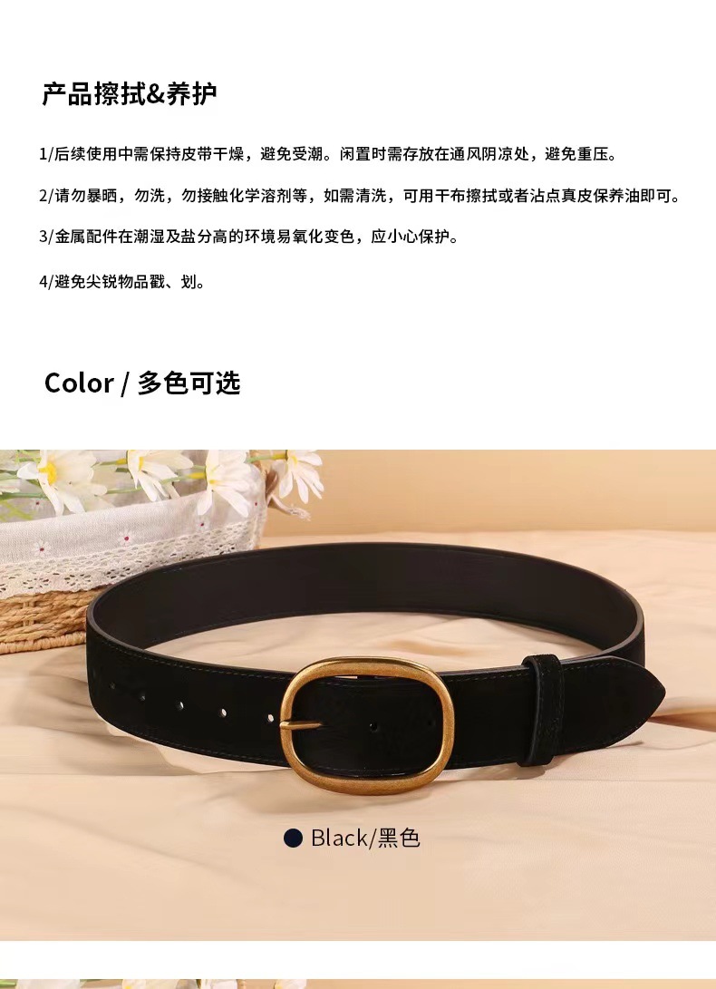 2.4CM宽玫瑰花扣真皮牛皮女士腰带装饰裙子牛仔裤百搭高级感皮带