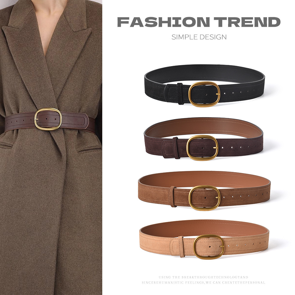 高級スエードつや消しレディースベルト本革多用途コートセーターダウンジャケット装飾ウエストバンドファッションレディースベルト
