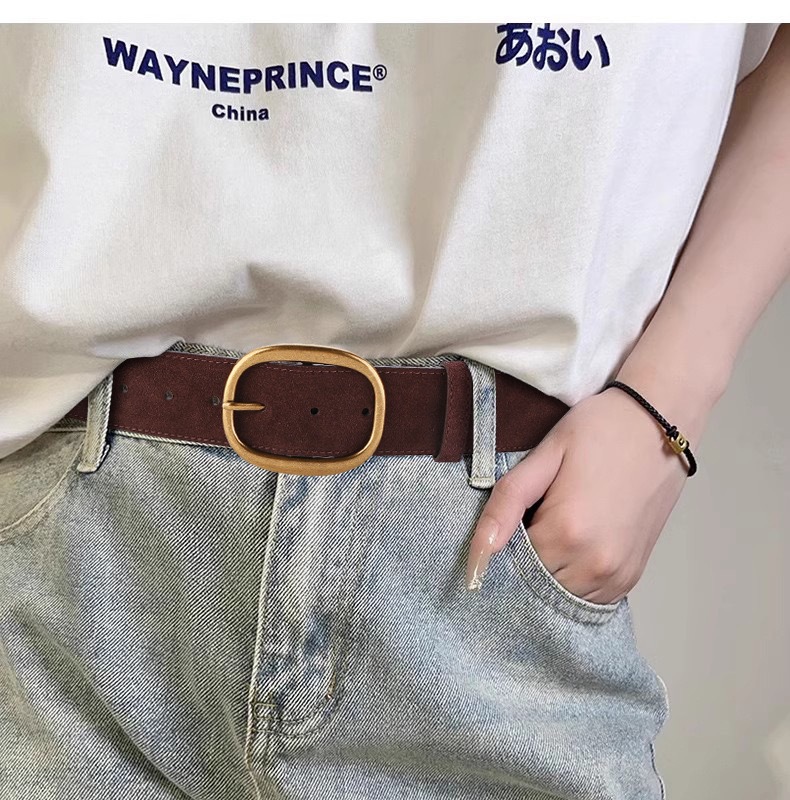 2024起爆推奨女性装飾スーツ小衆ベルトベルベット安可拉紅牛皮シンプルベルト卸売り