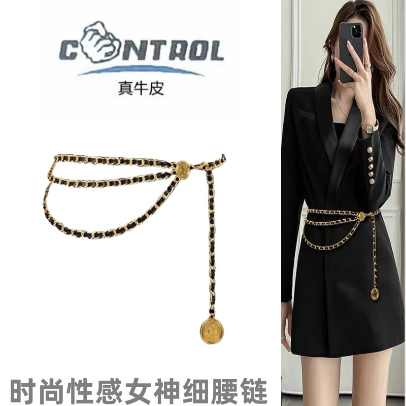 メタルウエストチェーン レディース新作 万能スーツコートベルト ファッショントレンド インスタ風 リトルシャネル風 インターネットセレブ風 ウエストマーク