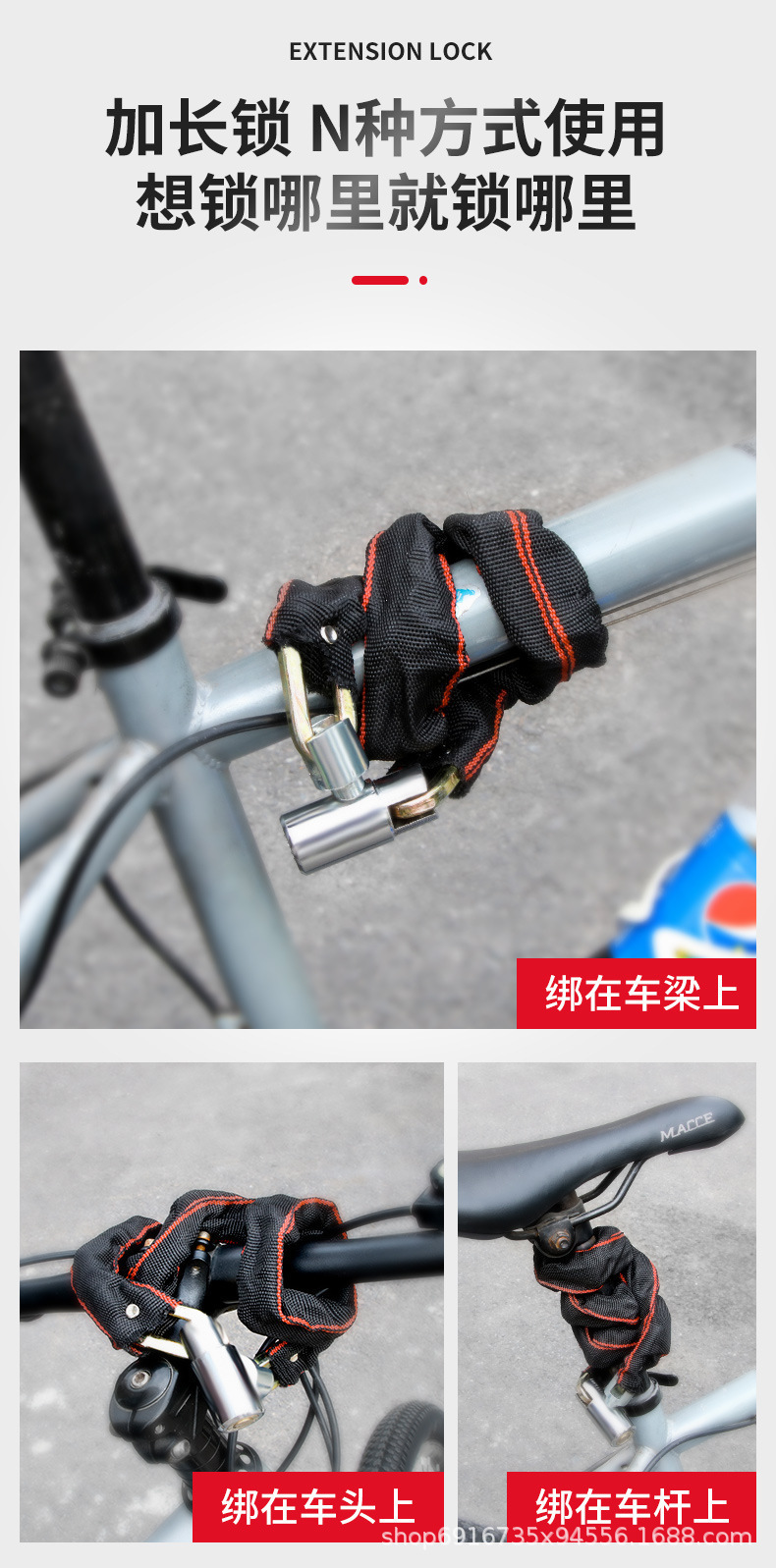 便携式自行车锁钢丝锁环形锁钢缆锁软锁防盗锁电动车锁链条链子锁