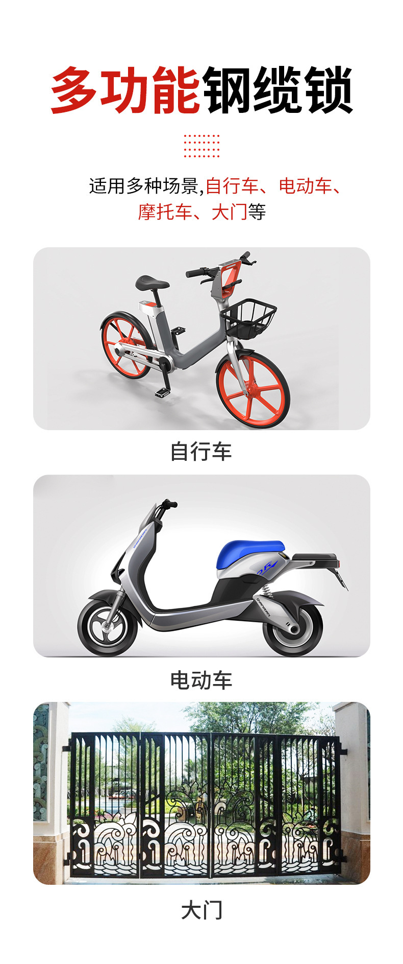 【工場価格】自転車ロック盗難防止ロック携帯鋼ケーブルロックワイヤーロック電気自動車ロックガラスドアチェーンロック