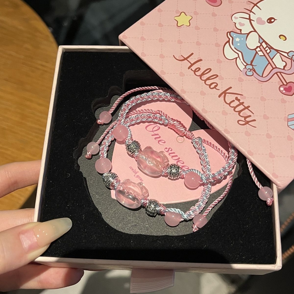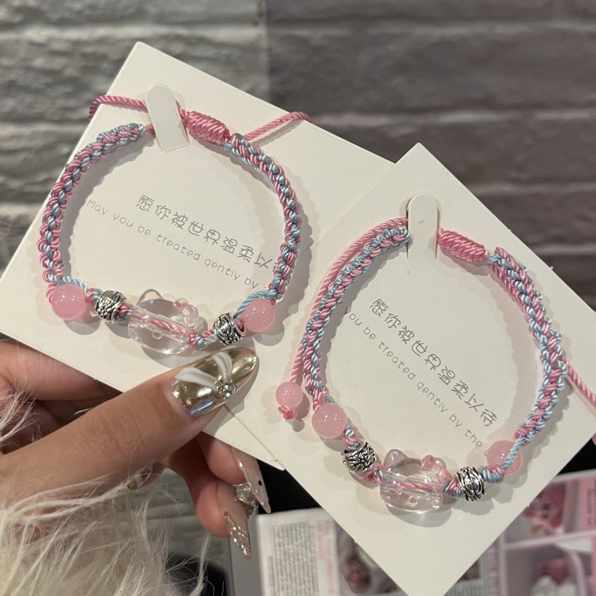ハローキティ手織りブルーピンクブレスレットニッチかわいい学生ガールフレンドギフトハローキティアクセサリー