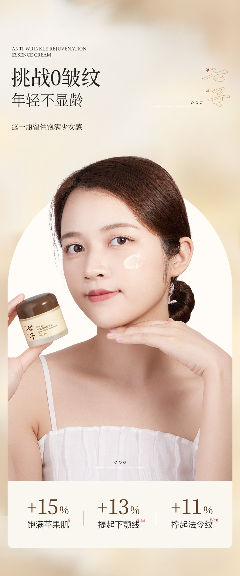 肌安妮七子抗皱嫩肤精华霜淡化细纹细腻毛孔提亮丰盈舒缓肌肤厂家