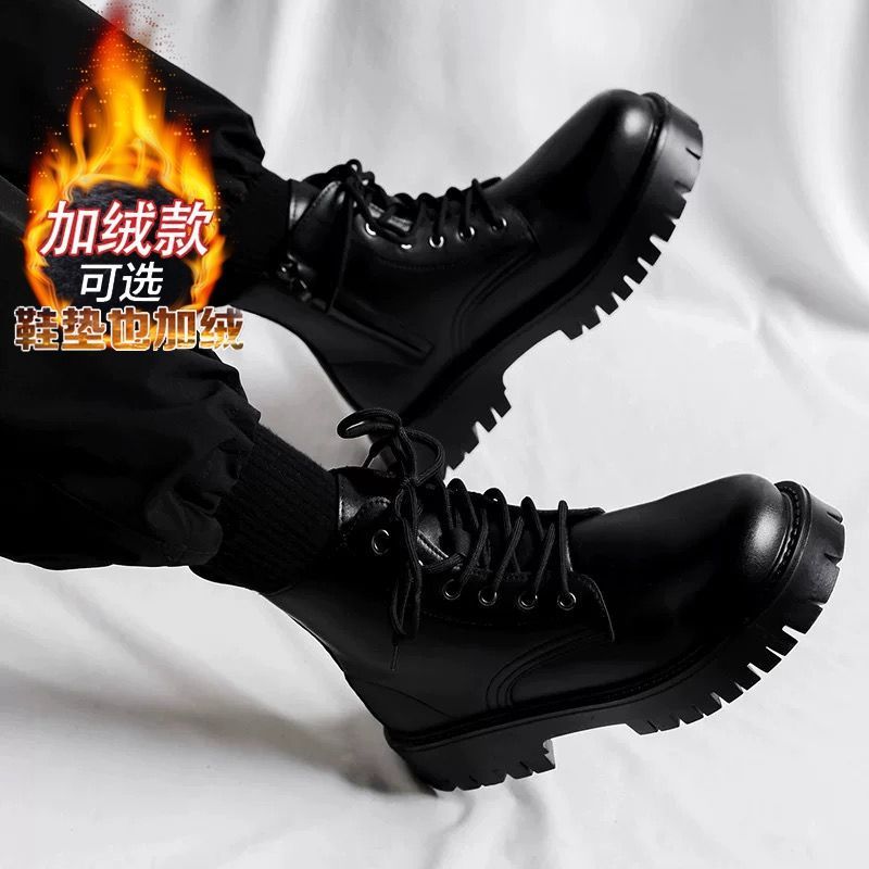 马丁靴男款冬季新款高帮英伦风工装靴子中帮厚底加绒加绒保暖棉鞋
