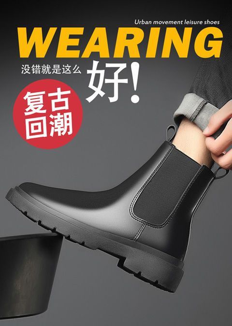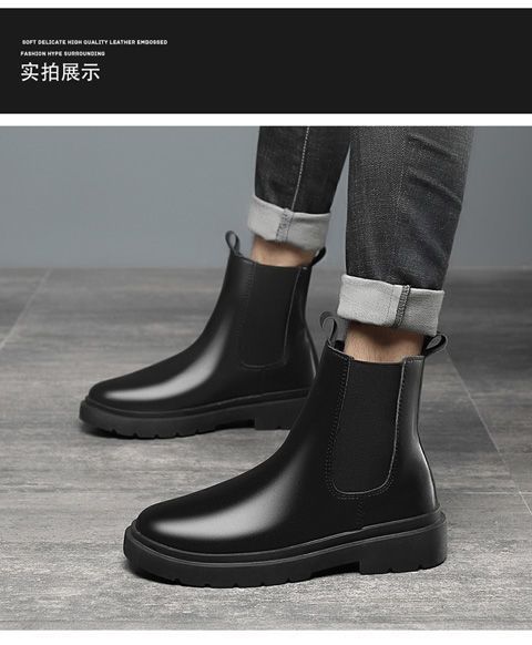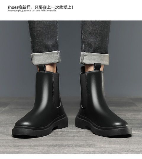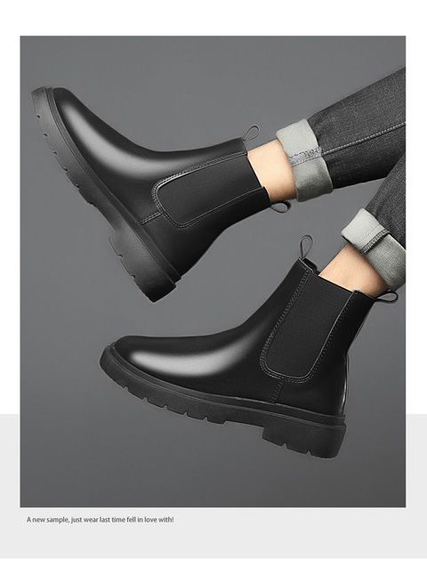 チェルシーブーツメンズ 2025 新ソリッドカラーマーティンブーツ多用途レトロスリッポンハイトップブーツ厚底ショートブーツ男性用