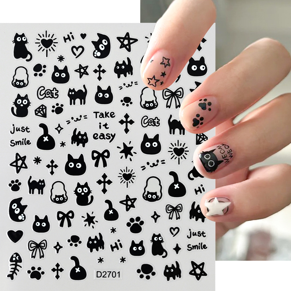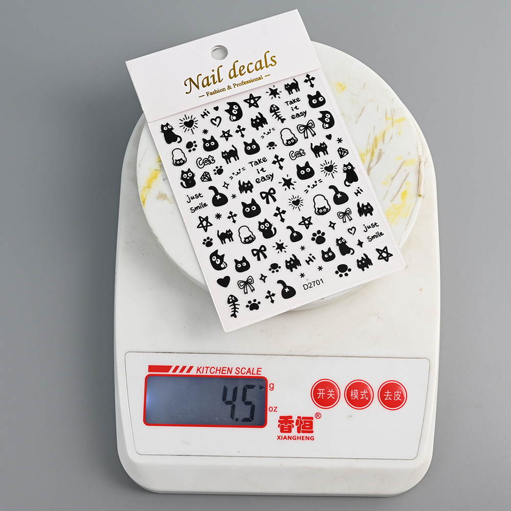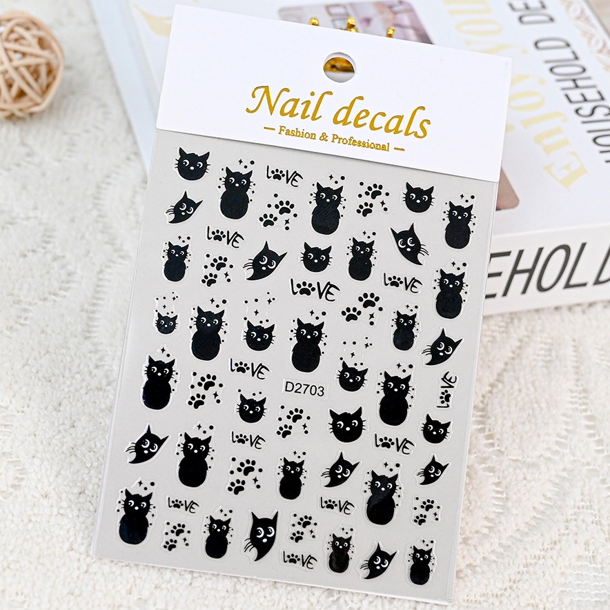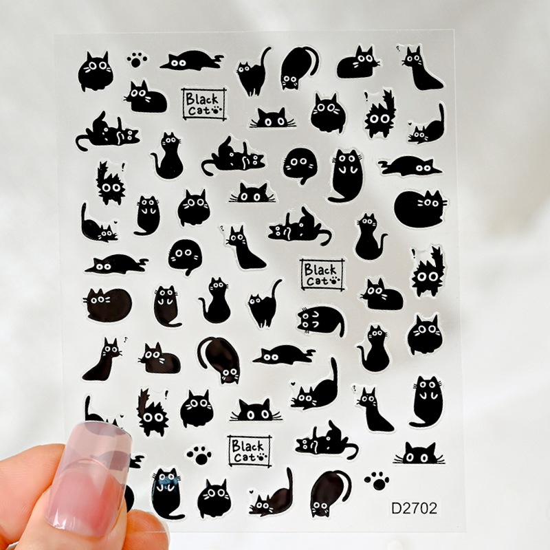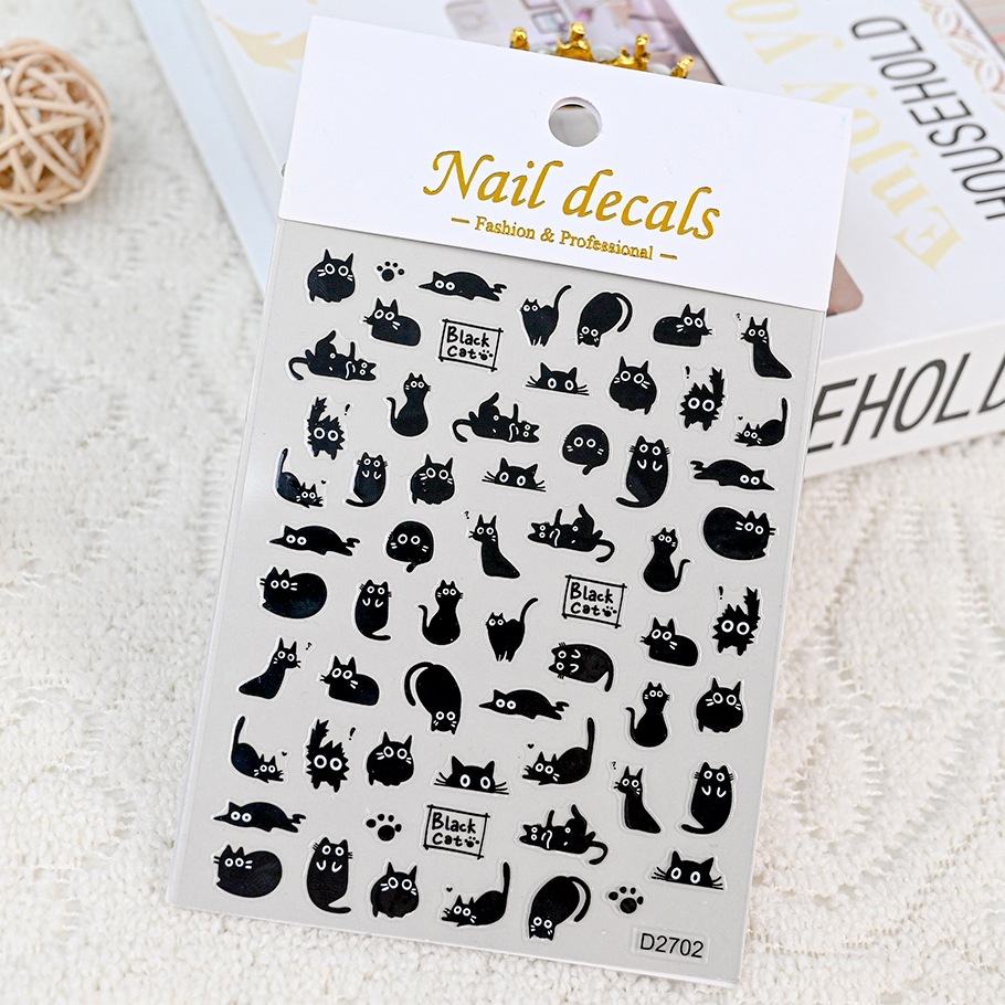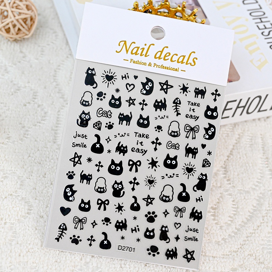 起爆かわいいアニメ猫子犬落書き爪シール黒3Dバックゴムアニメ動物ネイルシール