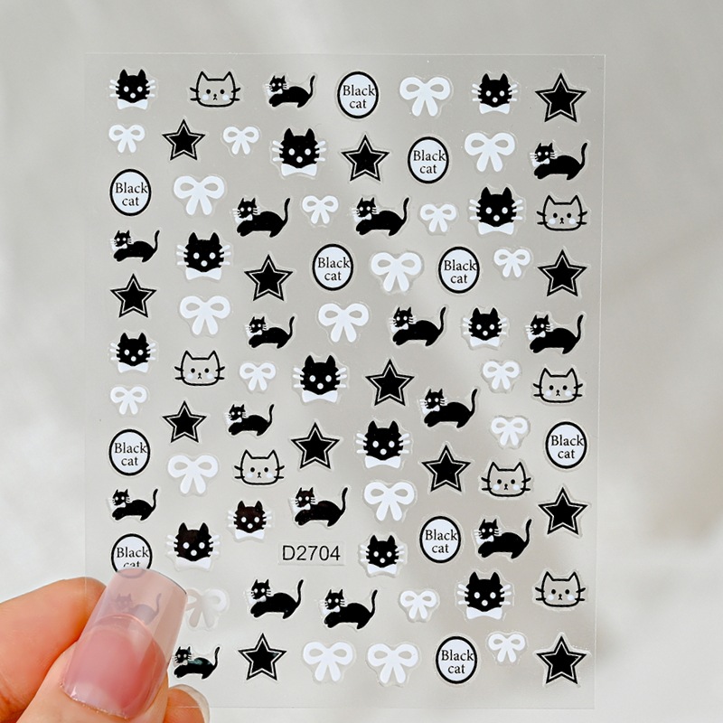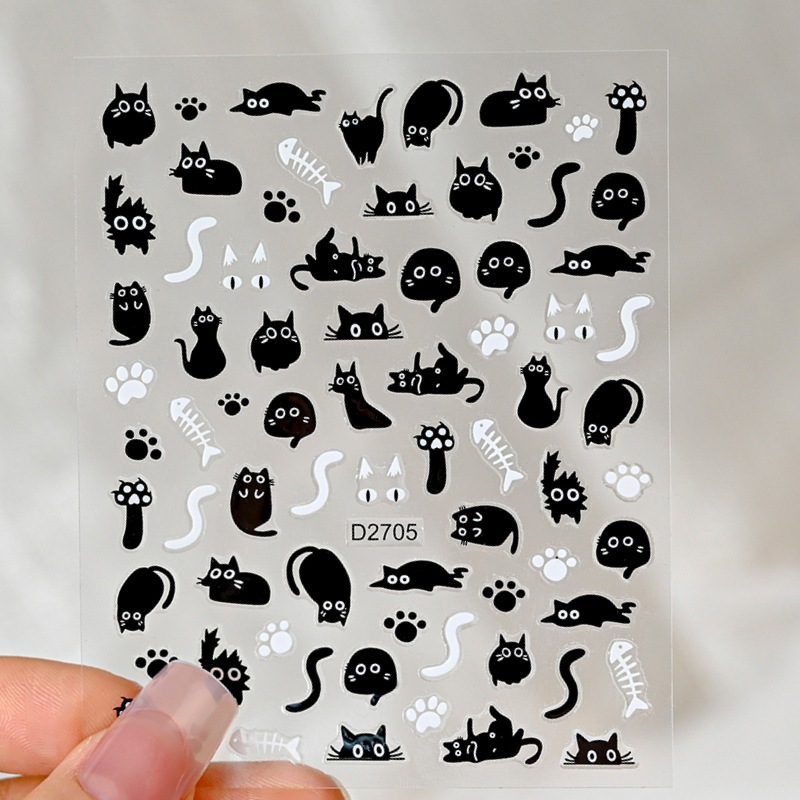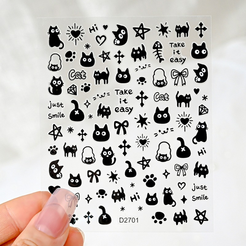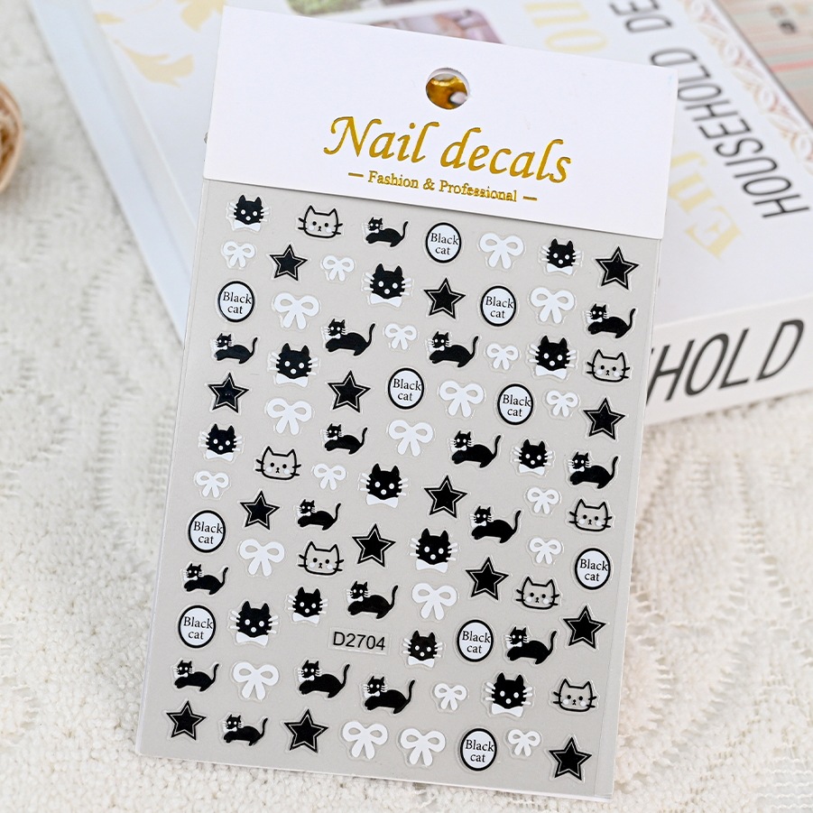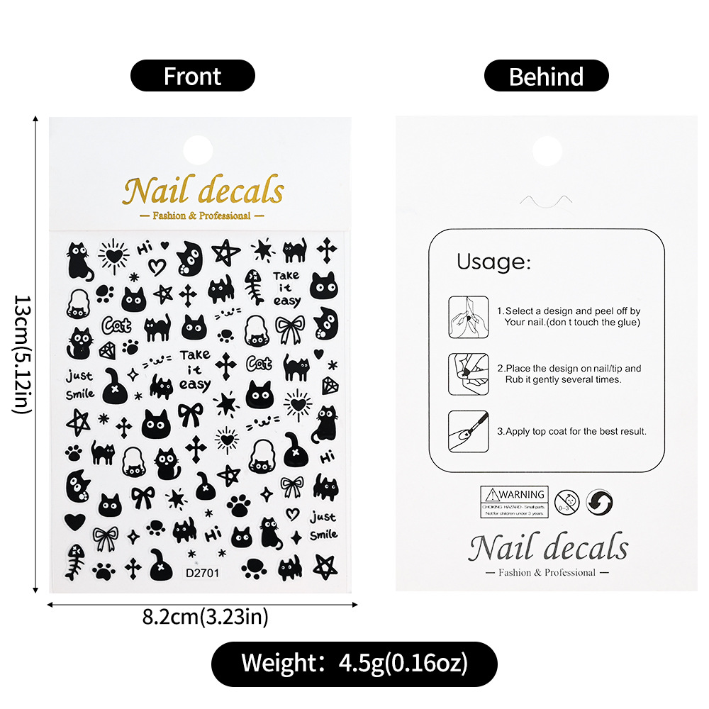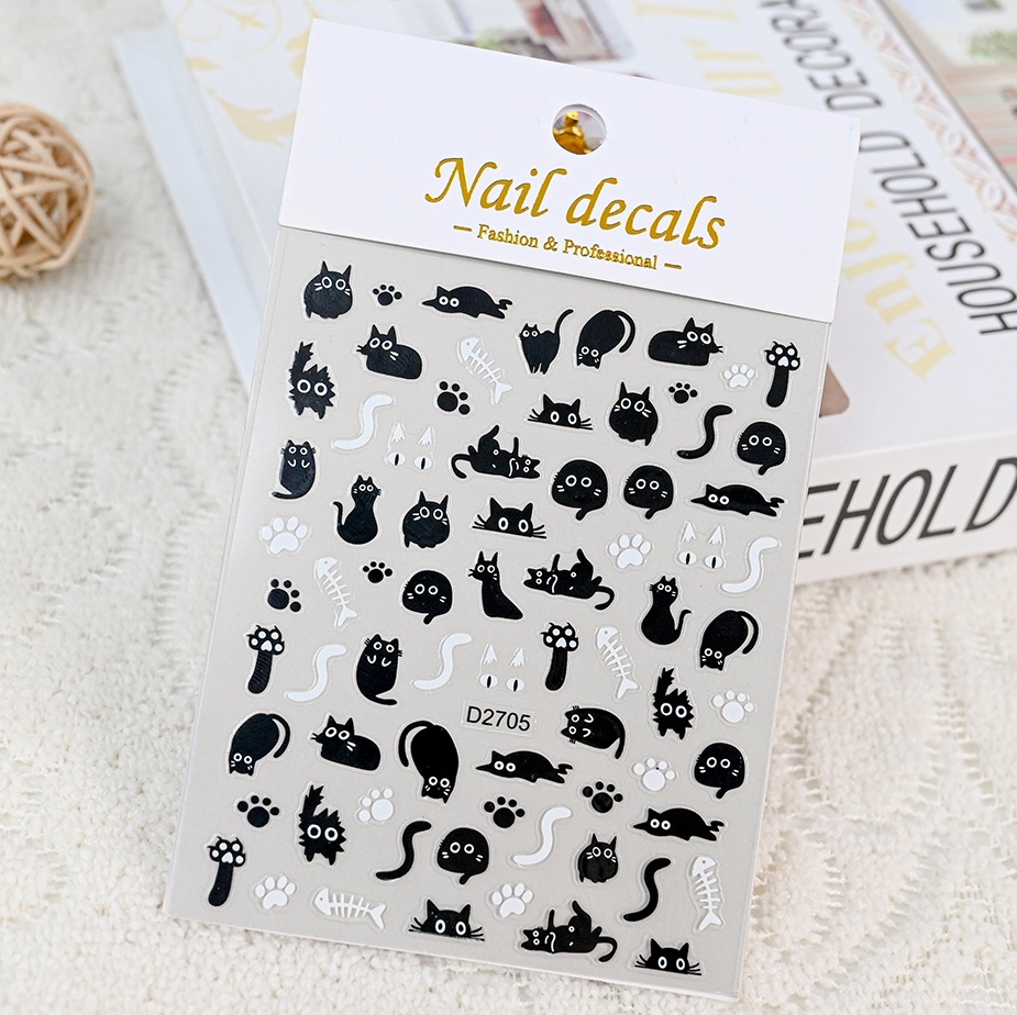 起爆かわいいアニメ猫子犬落書き爪シール黒3Dバックゴムアニメ動物ネイルシール