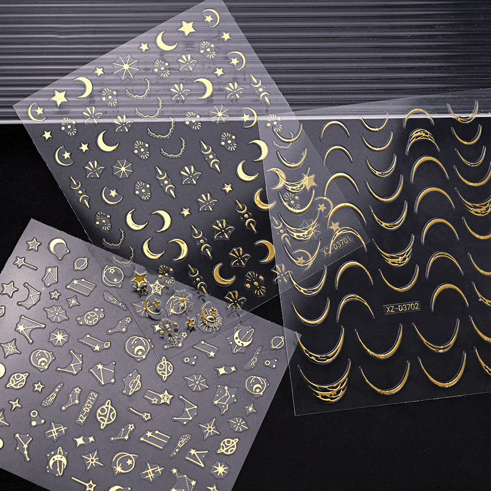 越境してよく売れている星月のネイルシール星月の翼の羽の図案のバックゴムは自分で爪の装飾のデカールにくっつきます。