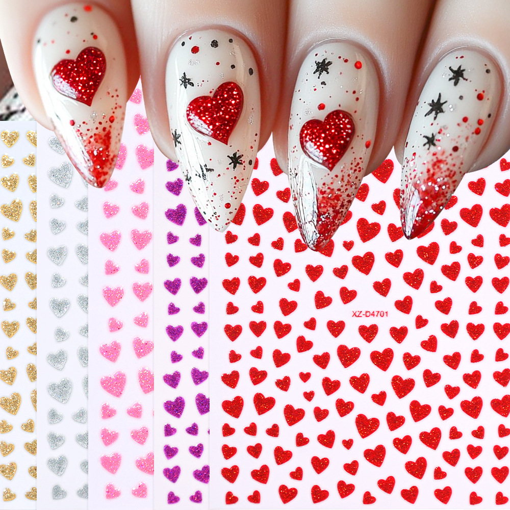 跨境烫金闪粉爱心情人节美甲贴纸DIY粉色紫色金色超甜爱心指甲贴