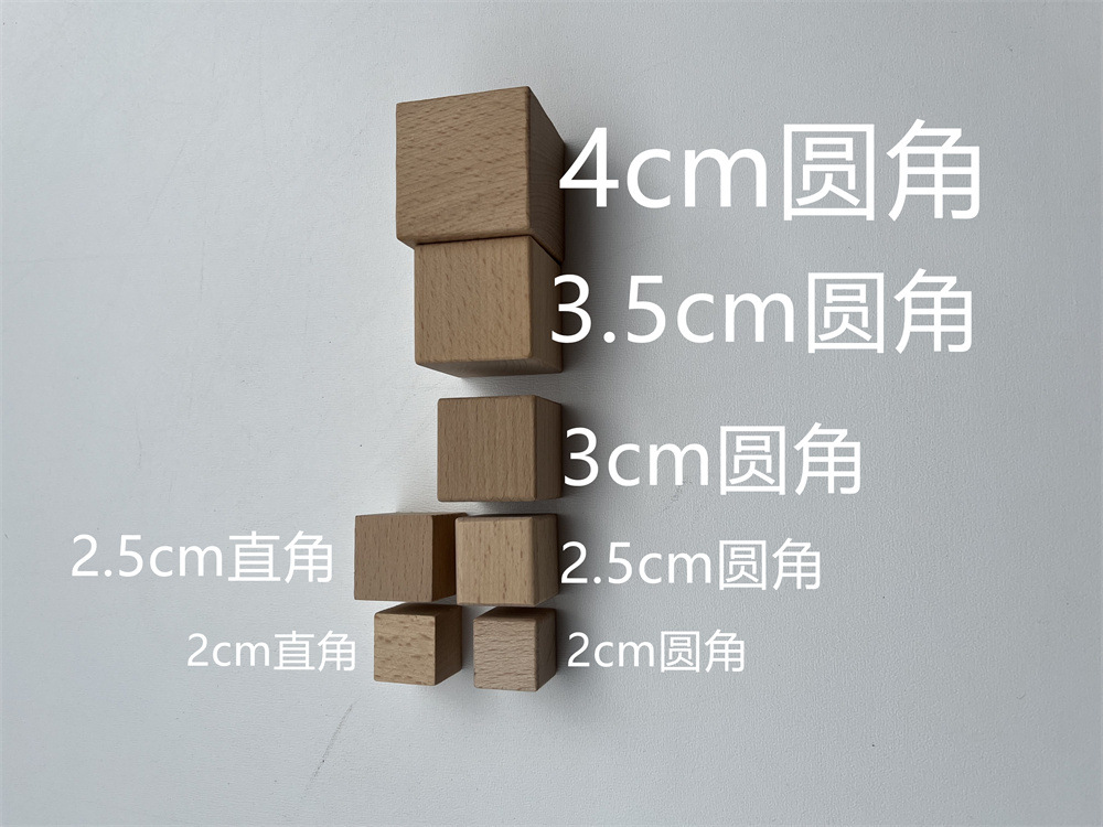 正方体榉木块圆形倒角光滑儿童玩具积木圆柱数学教具DIY益智模型