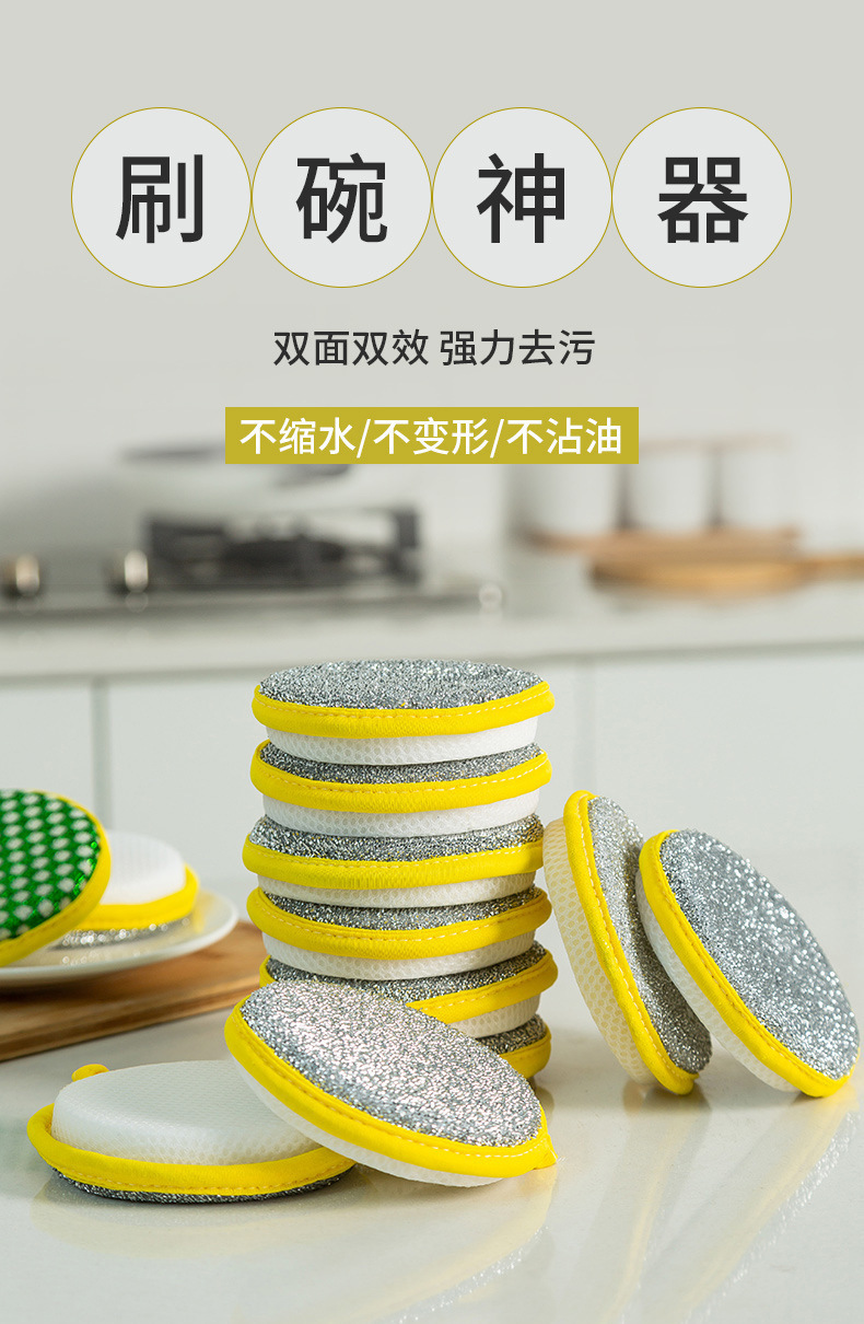 海绵擦圆形双面吸水元宝巾不沾油加大加厚厨房清洁刷锅不沾油可挂