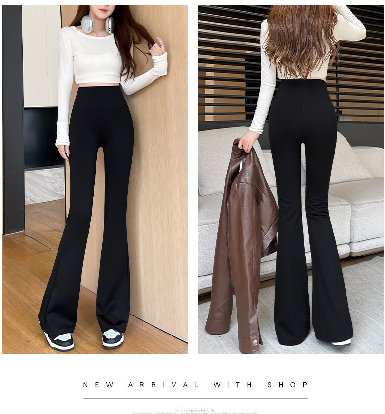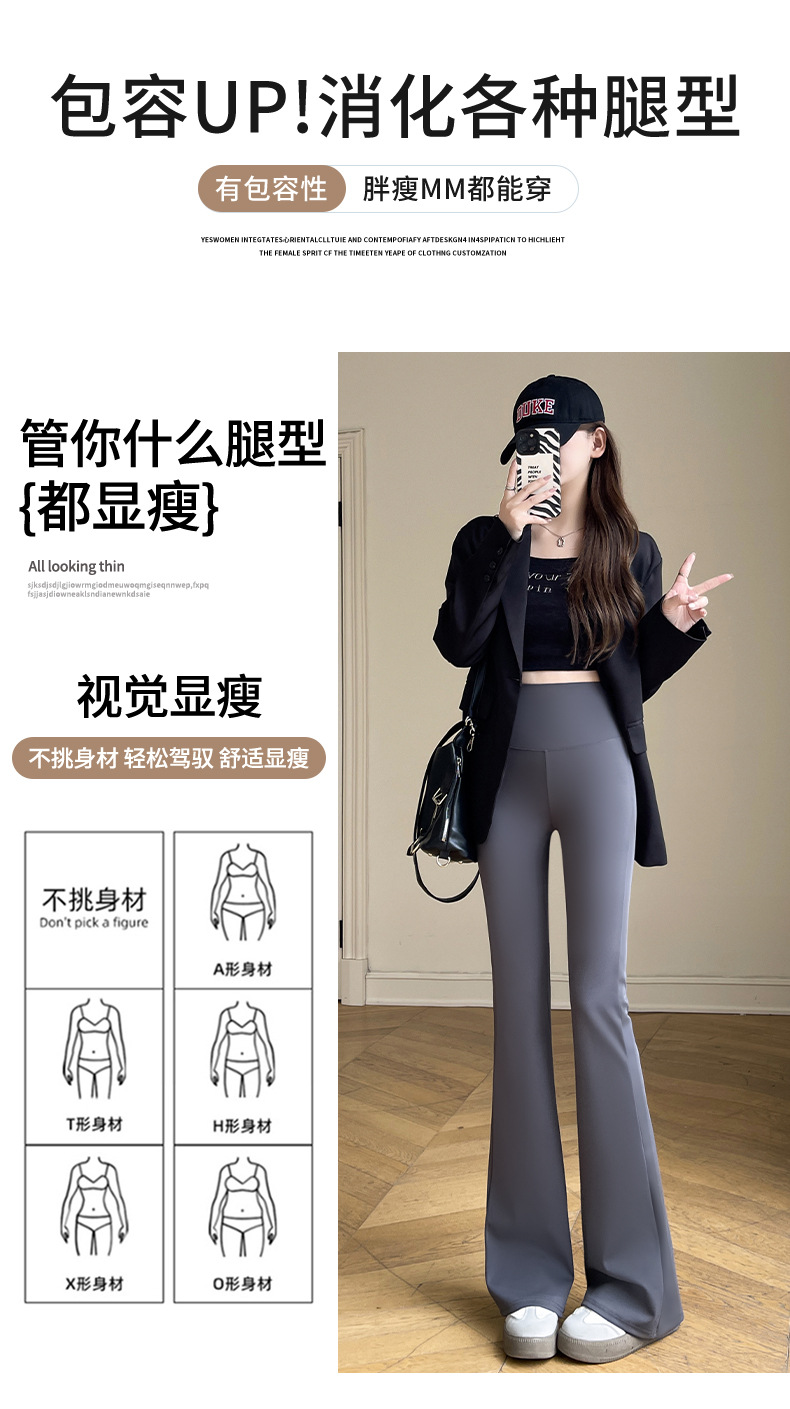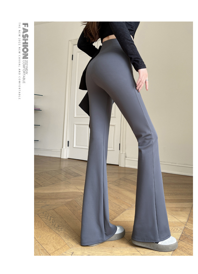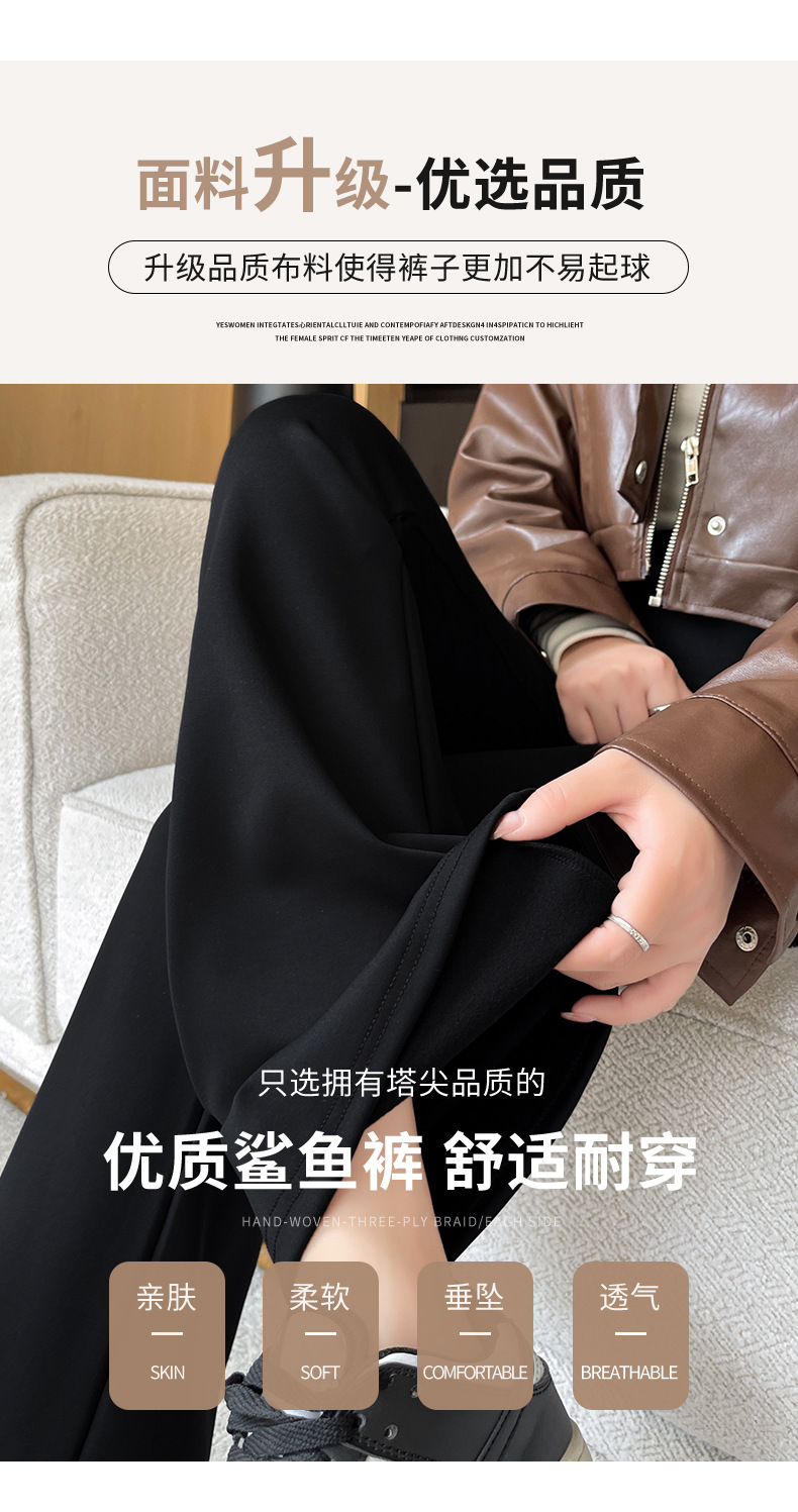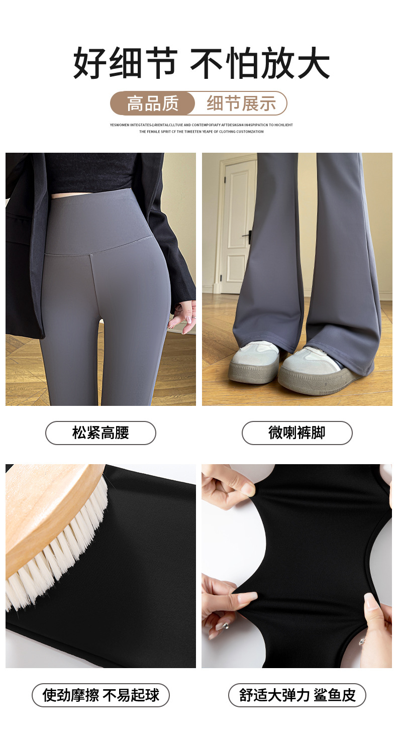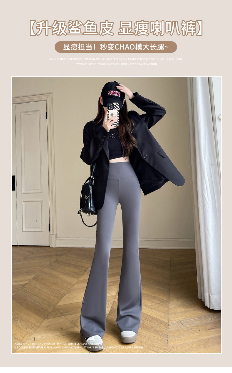 カジュアルなズボンの女性のサメの皮のズボンのカジュアルなズボンの2024秋冬の垂感の小さいラッパのズボンの高い腰はやせているレギンスの女性を現します。