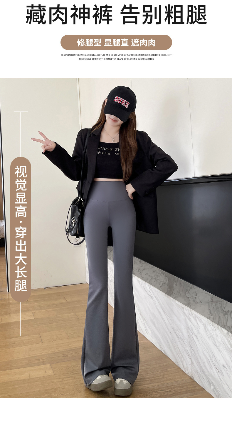 女性が外で履くための黒のレギンスフレアパンツ、ハイウエスト伸縮性スリムパンツ2025春夏新作ナローバージョン馬蹄スリッパ