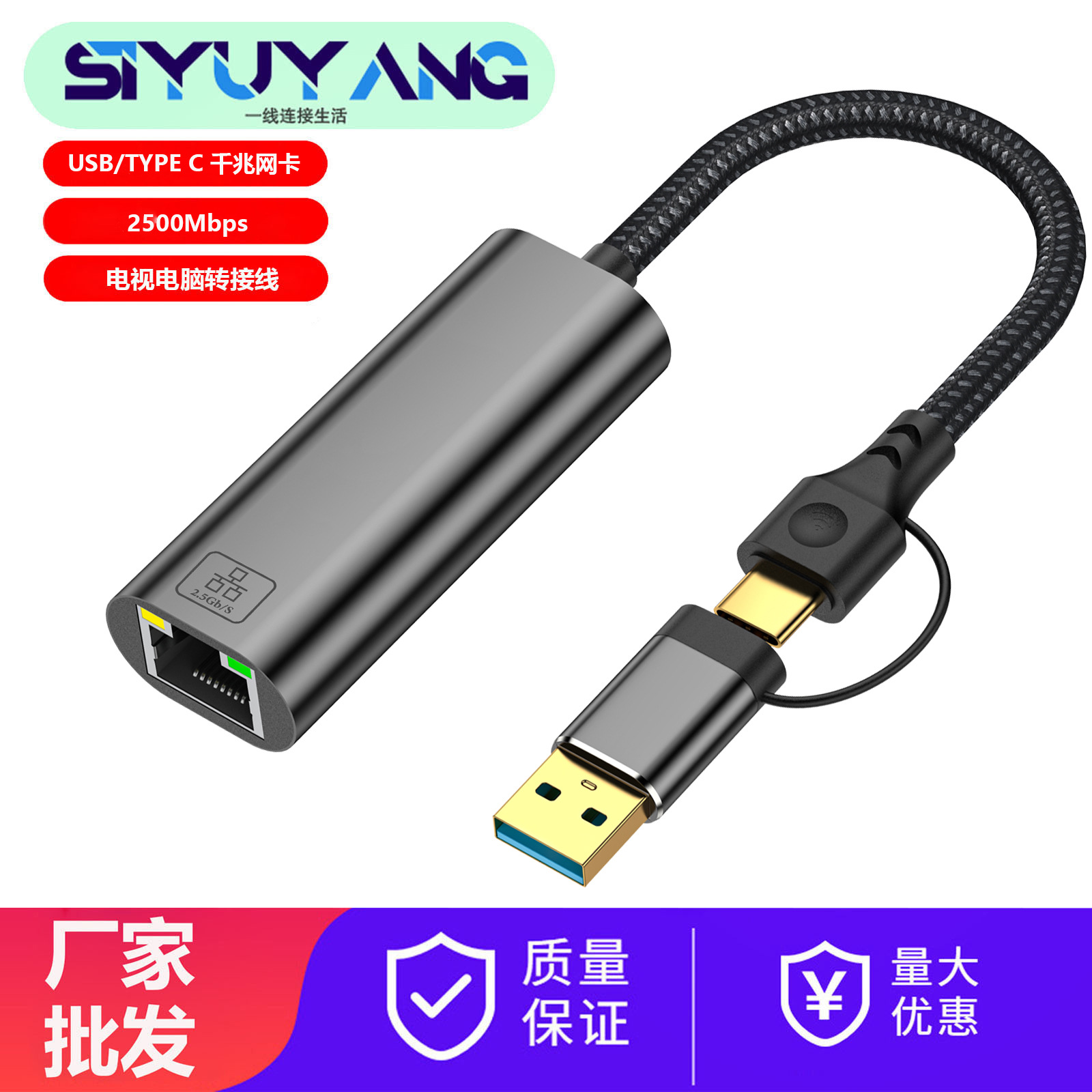2 in 1 USB3.0 TYPE C RJ45ネットワークケーブルUSB3.0ネットワークカードパソコン携帯電話ギガ高速ネットワークカード