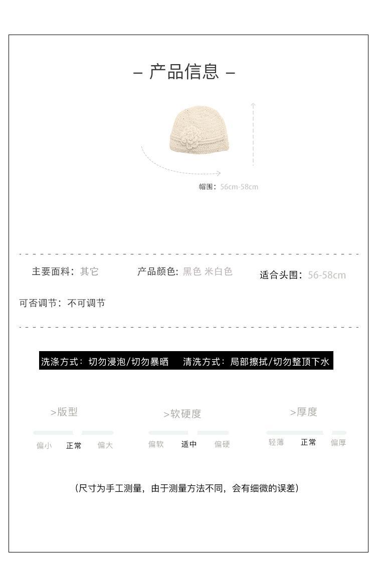韩系立体手工花朵针织包头帽子女秋冬季大头围显脸小保暖毛线冷帽
