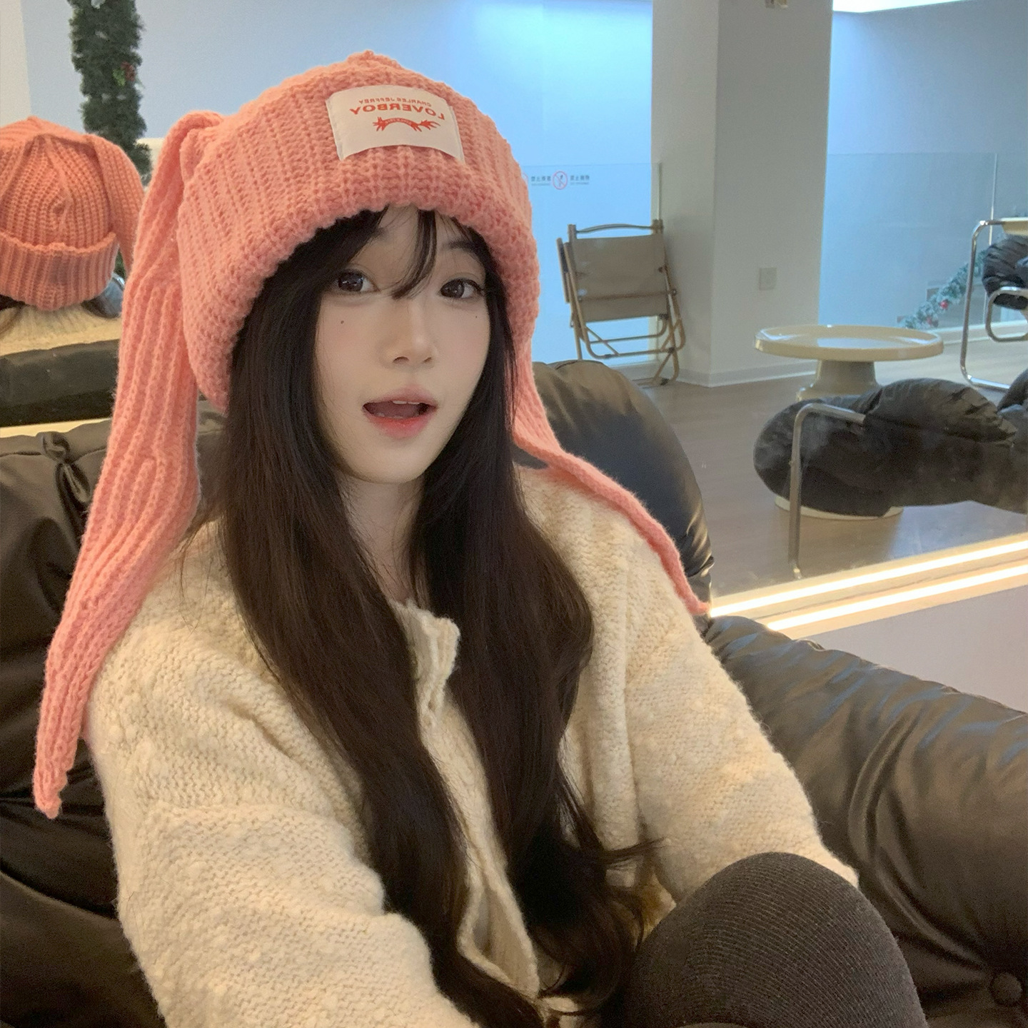 秋冬の韓国のファッションブランドのデザインの小さい大衆の個性のウサギの耳の毛糸の帽子は耳の保温のニットの帽子の子供を保護します。